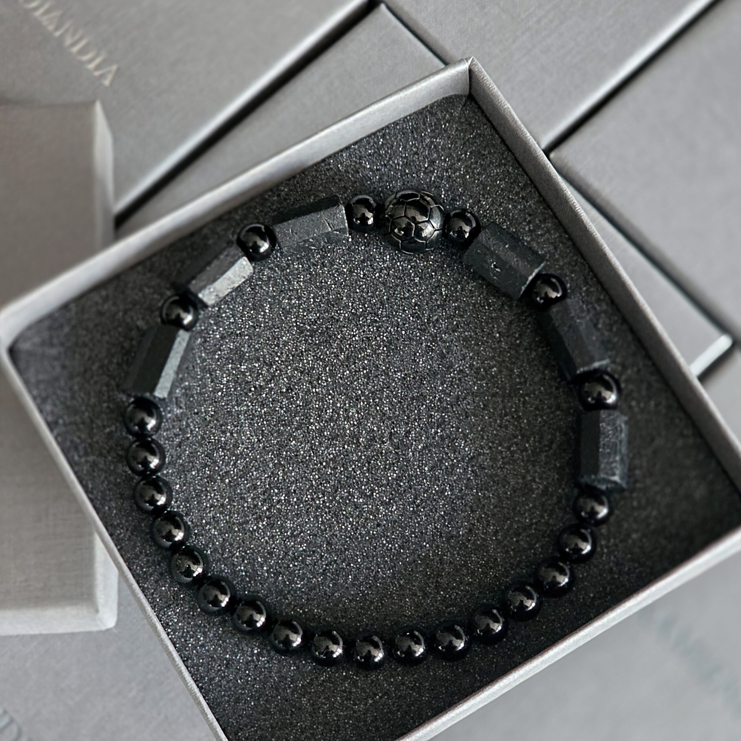 Bransoletka męska soccer Turmalin, piłka w kolorze czarnym ze stali szlachetnej.