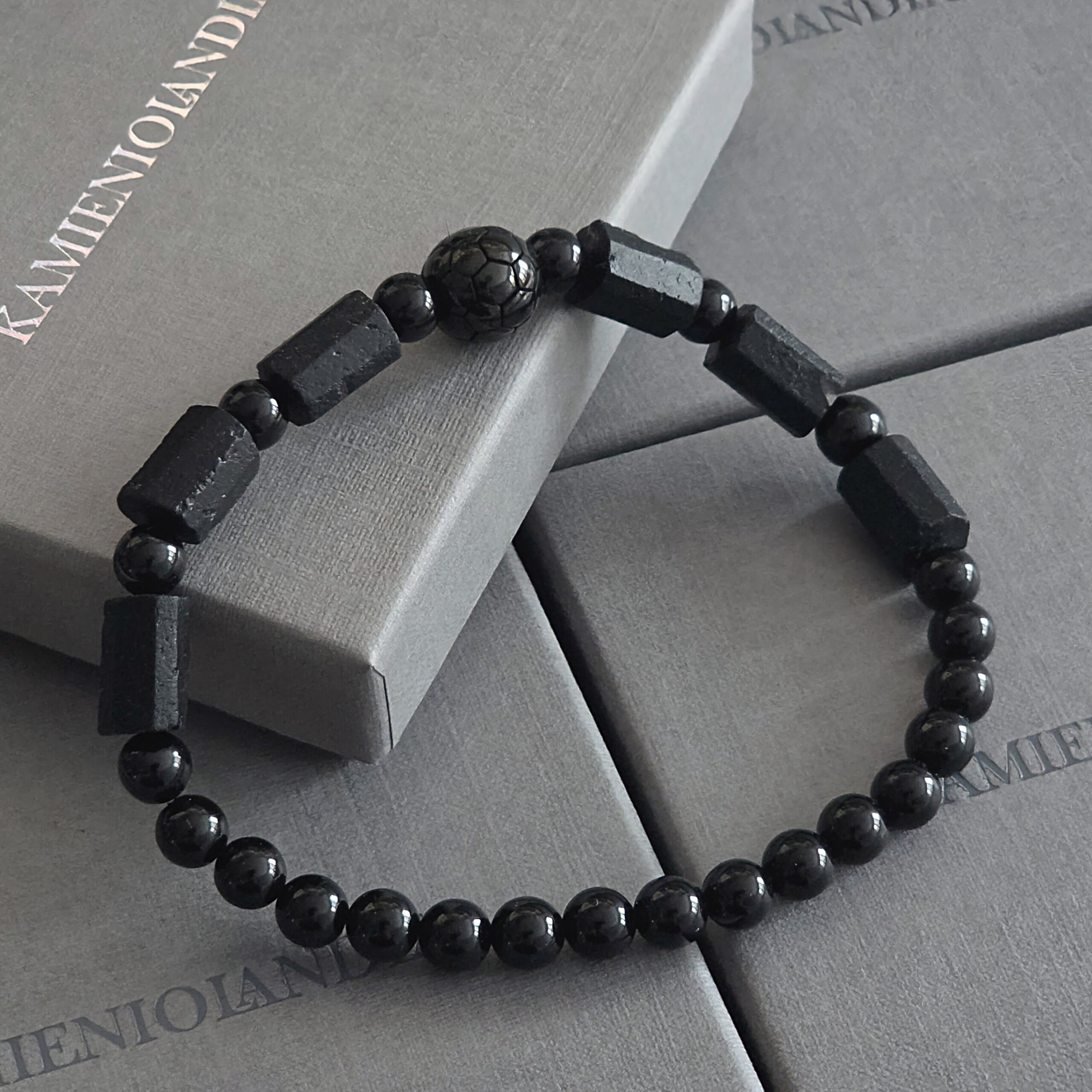 Bransoletka męska soccer Turmalin, piłka w kolorze czarnym ze stali szlachetnej