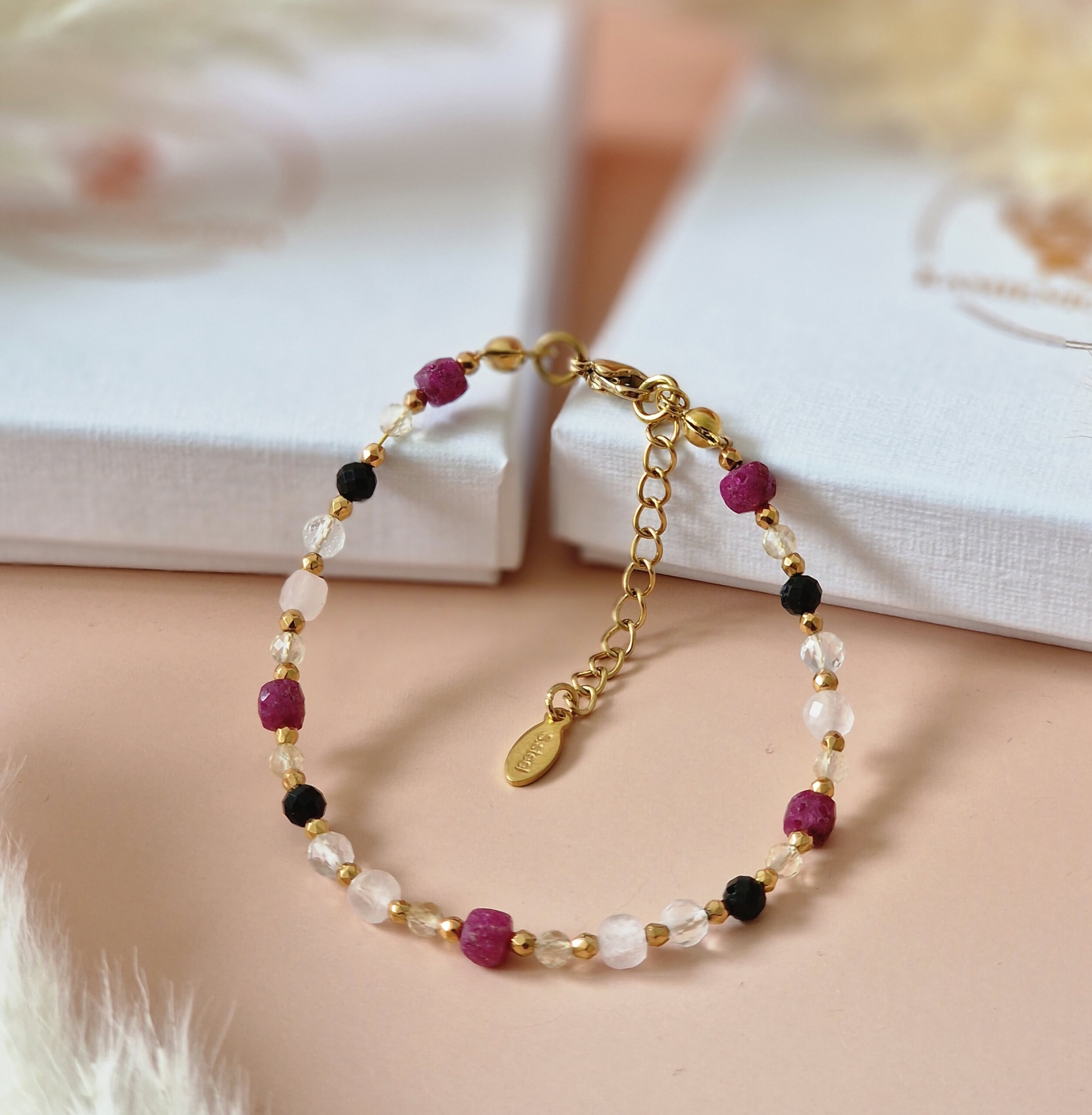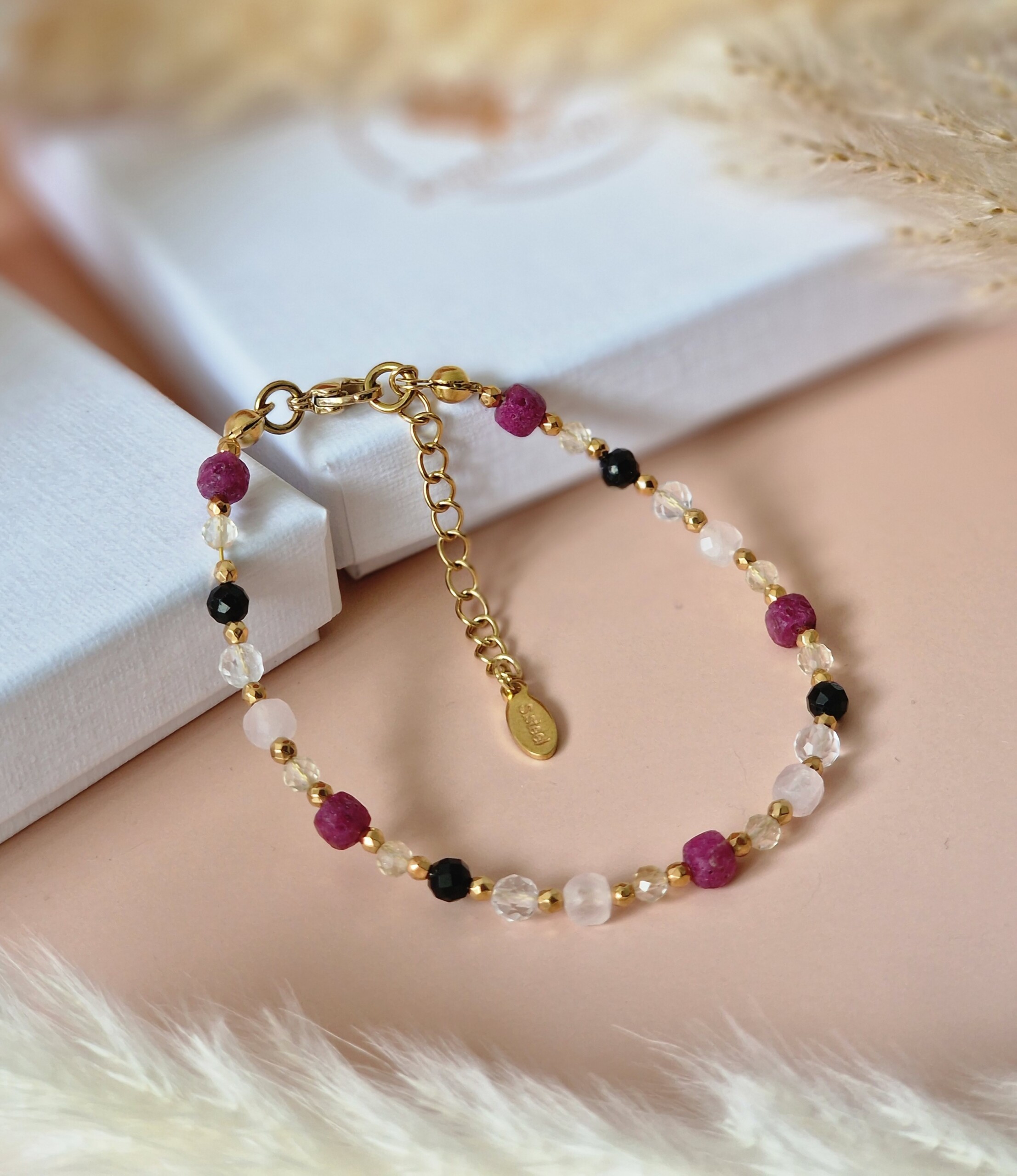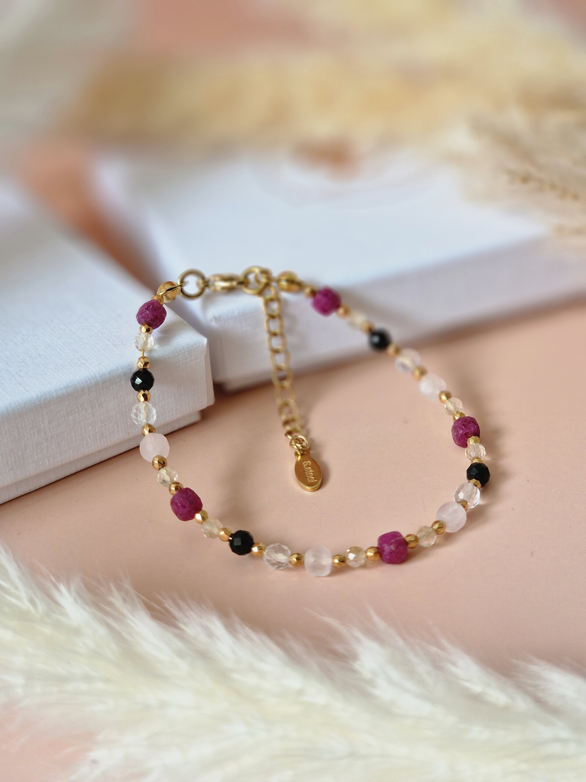 BRANSOLETKA Rubin, Kwarc różowy, Krysztal górski, Cytryn, Turmalin