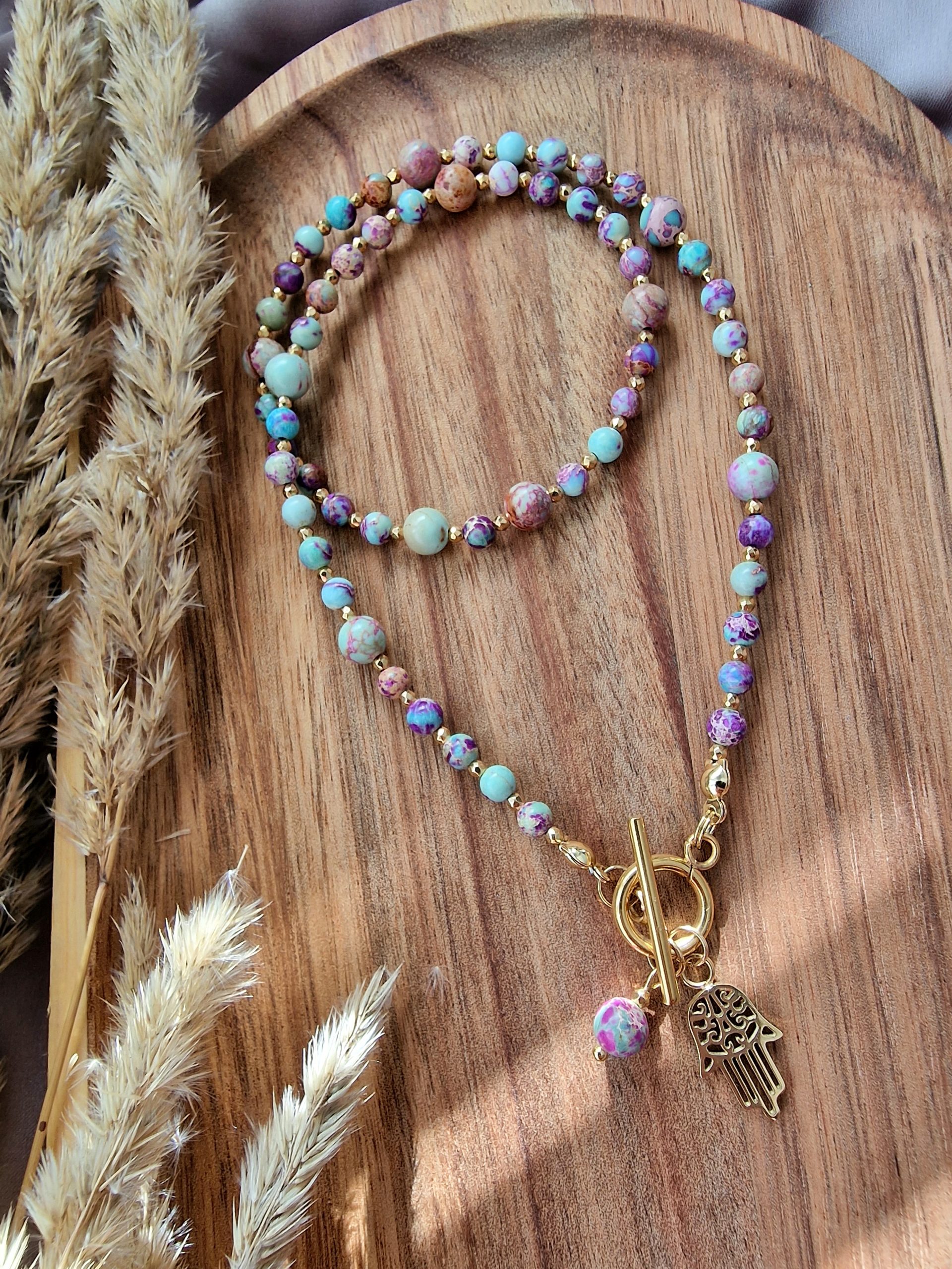 Naszyjnik Jaspis cesarski niebiesko fioletowy
