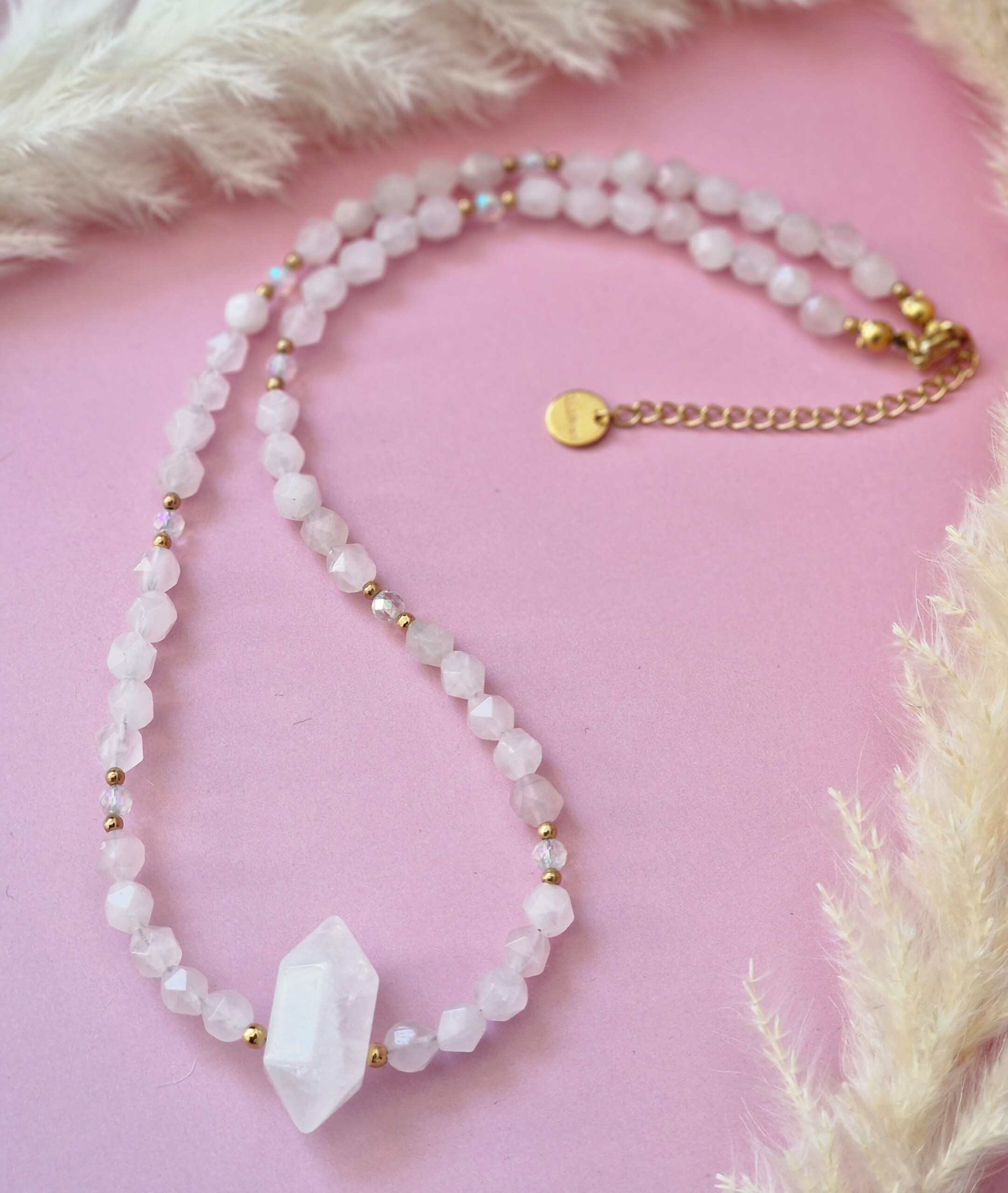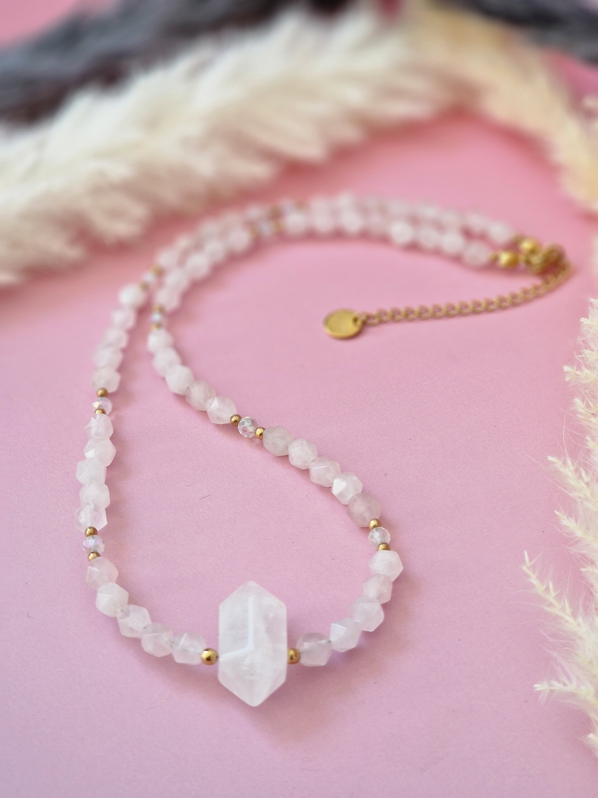 Naszyjnik Kwarc różowy z grotem z Kryształu górskiego