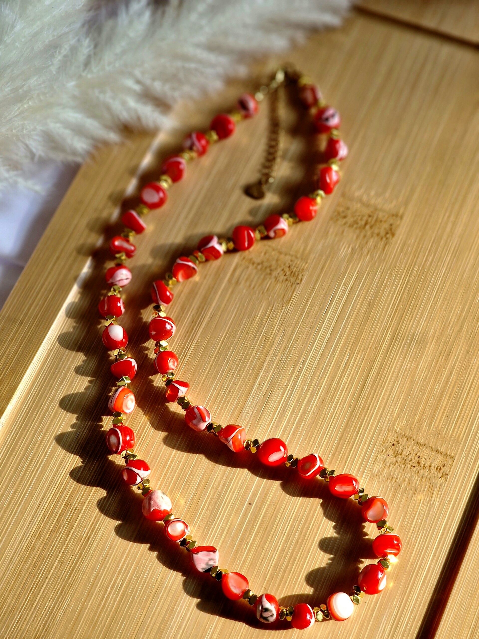 Kamienie użyte do wykonania naszyjnika :  MASA PERŁOWA  ok 6/9 mm, HEMATYT ok 3/4mm.