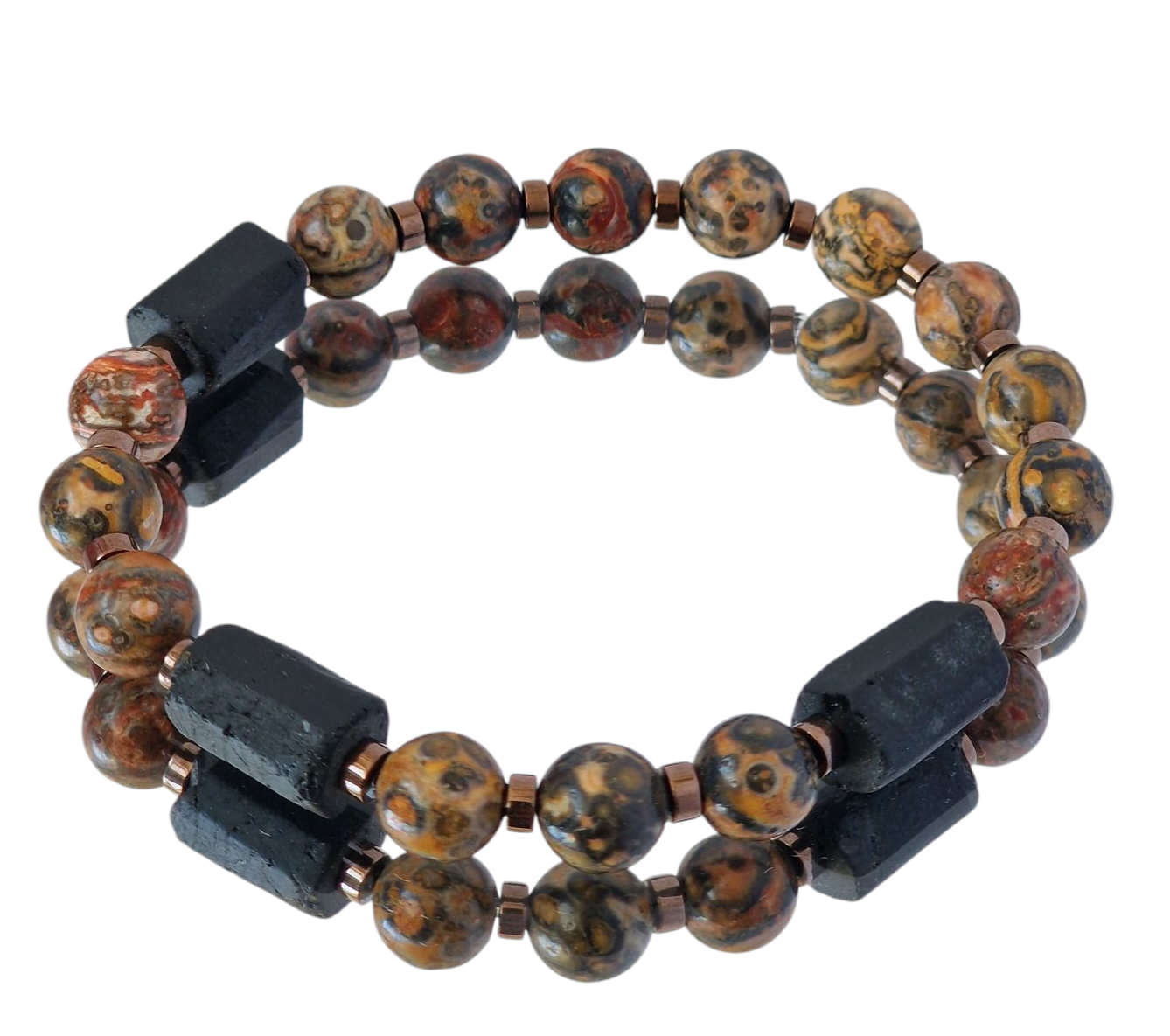 Bransoletka męska Turmalin, Jaspis leopard skin, Hematyt