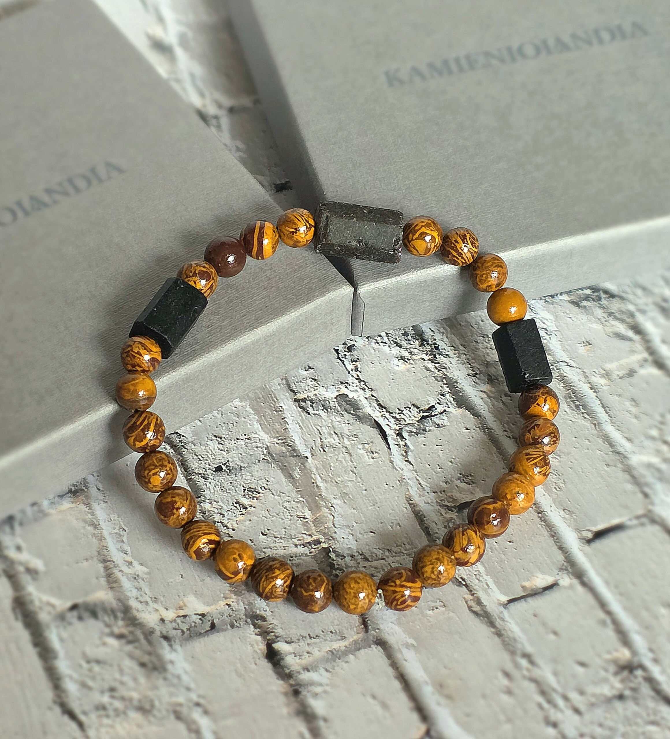Bransoletka męska Turmalin, Jaspis Kalahari