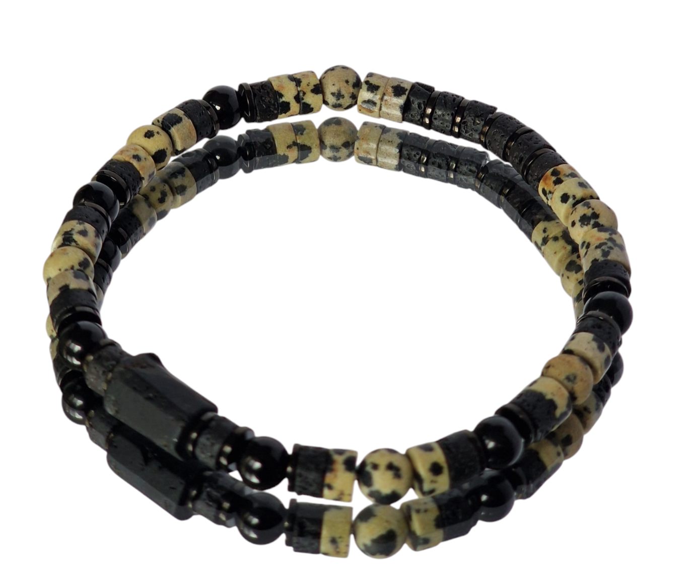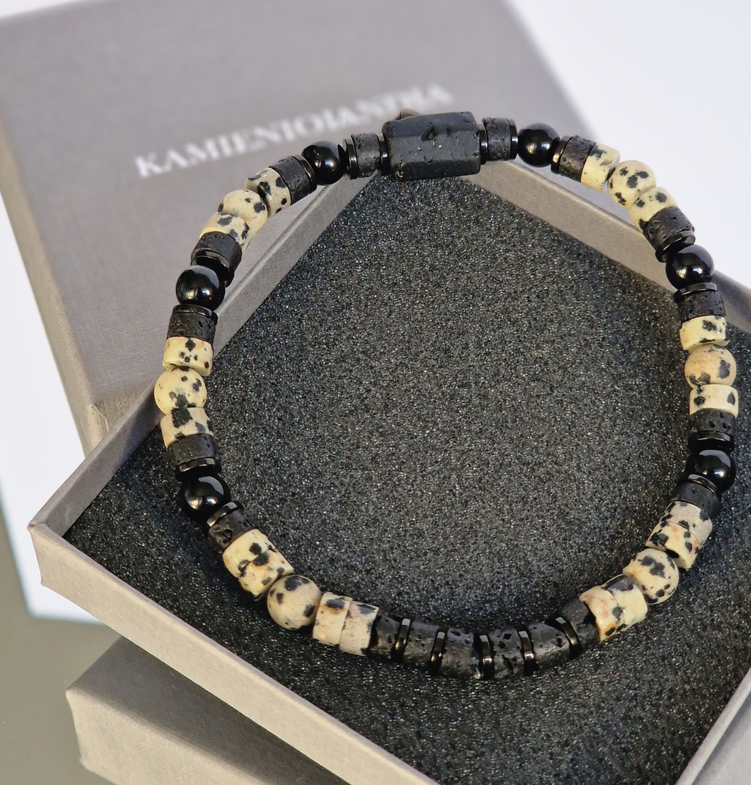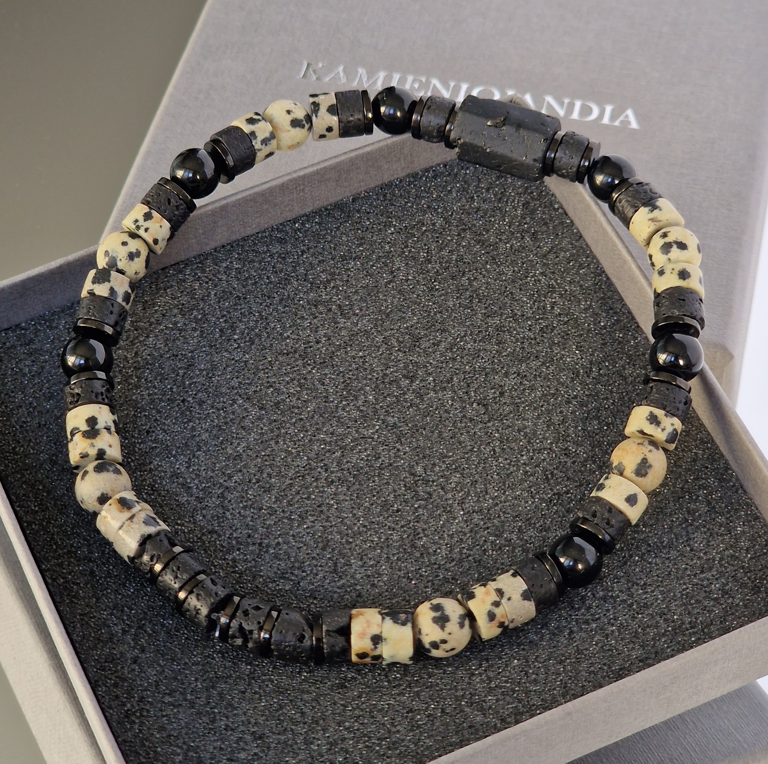Bransoletka męska Turmalin, Jaspis dalmatyński, Lawa wulkaniczna, Hematyt