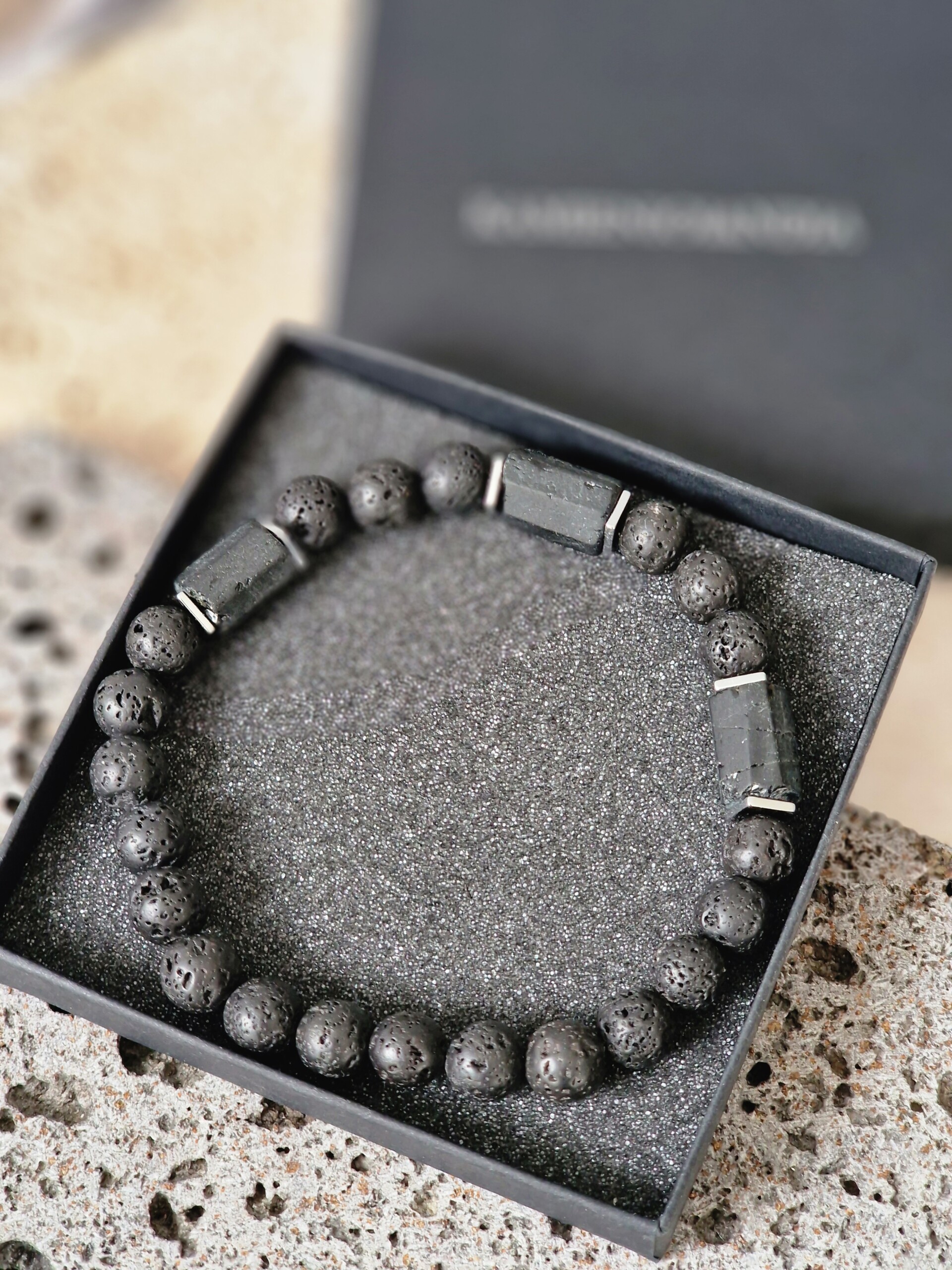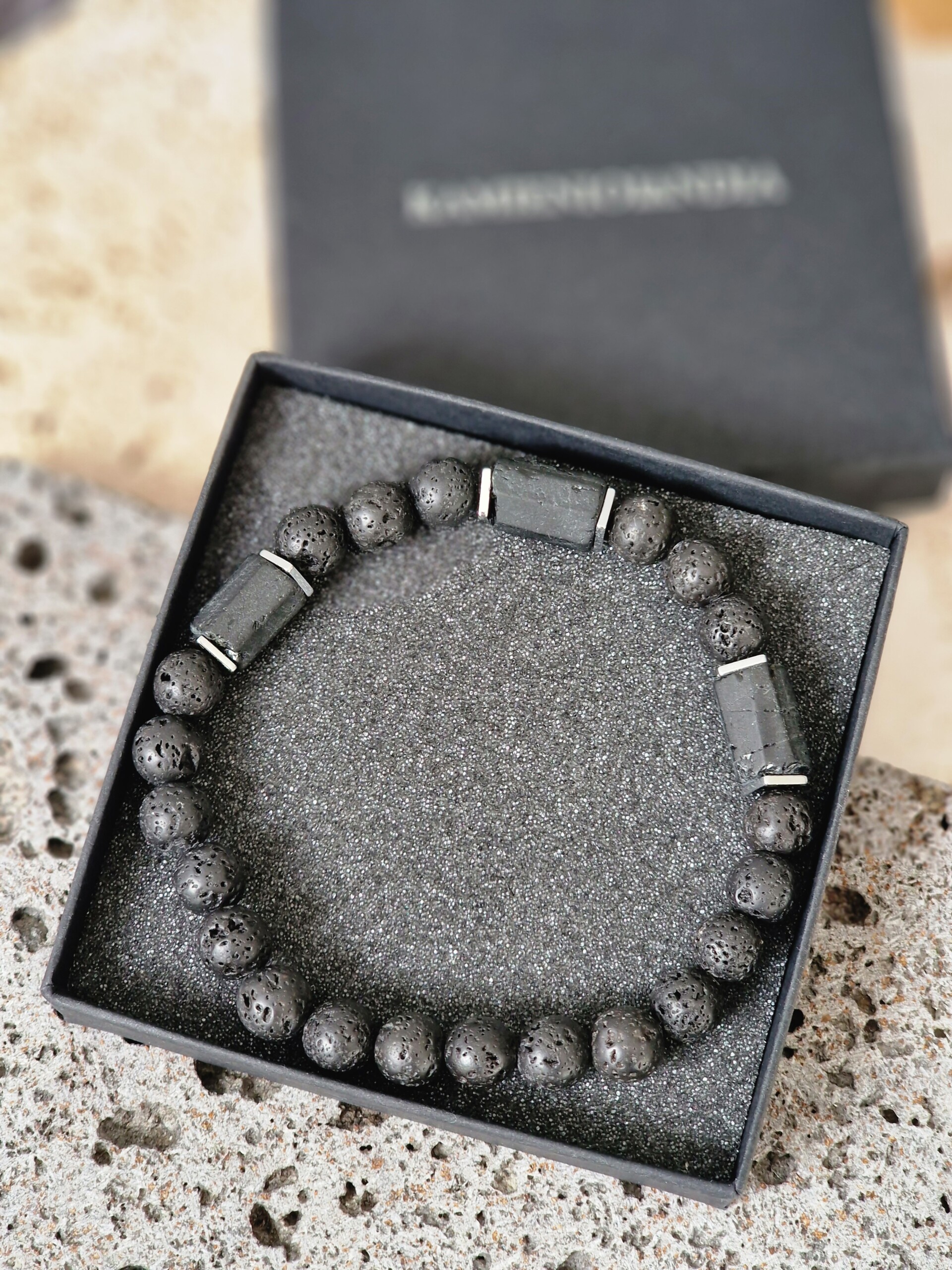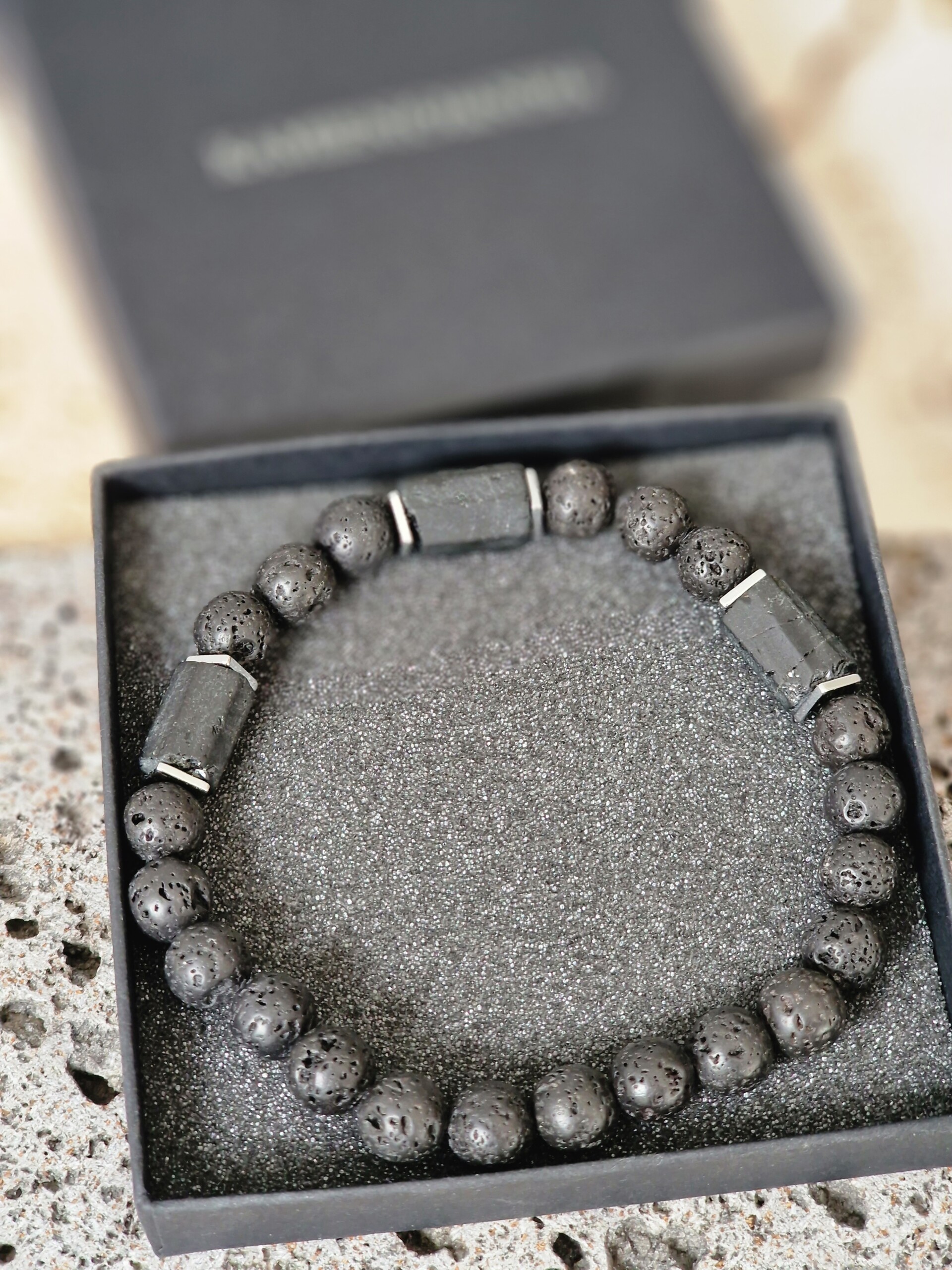 Bransoletka męska Turmalin, Lawa wulkaniczna, Hematyt
