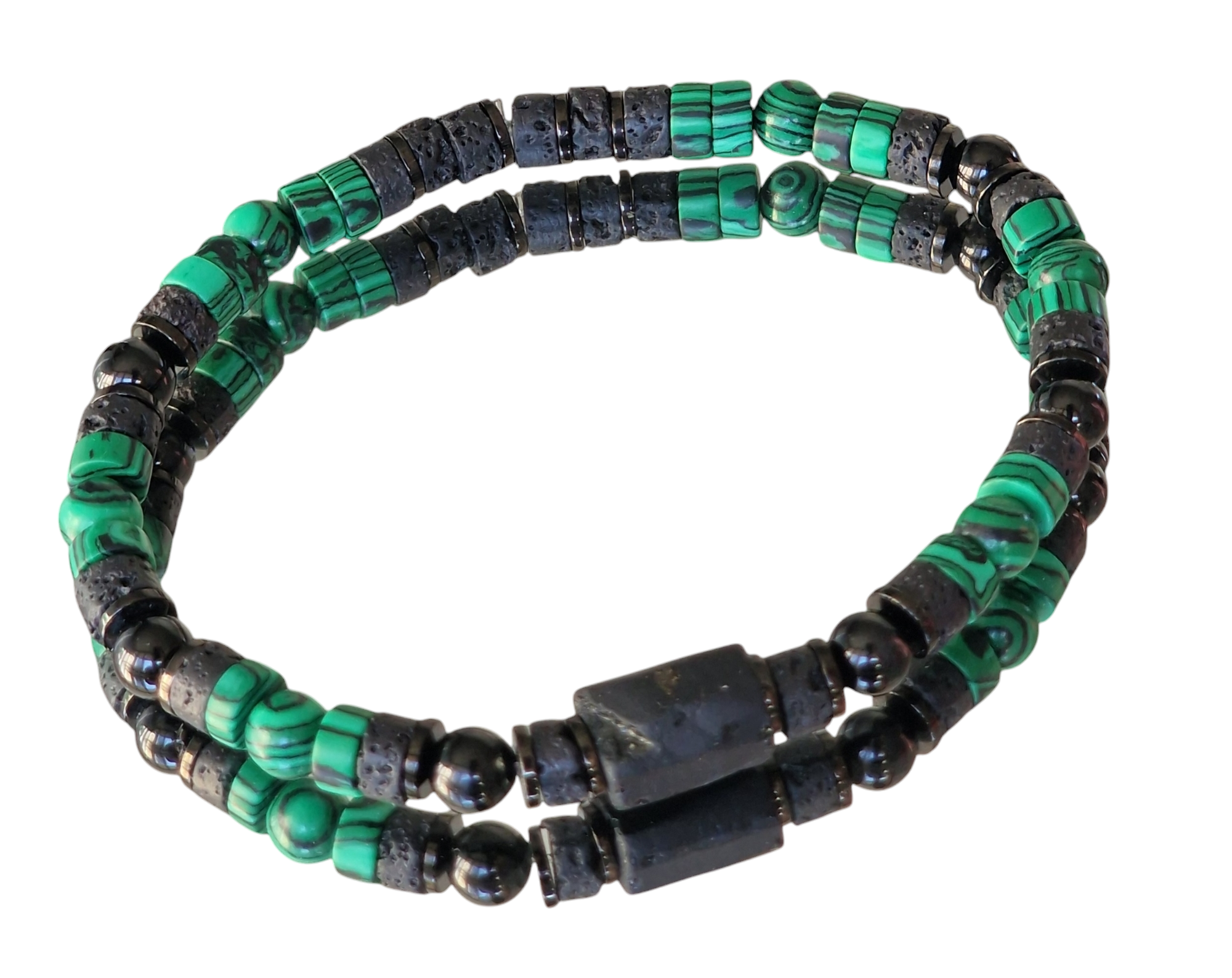 Bransoletka męska Turmalin, Malachit, Lawa wulkaniczna, Hematyt