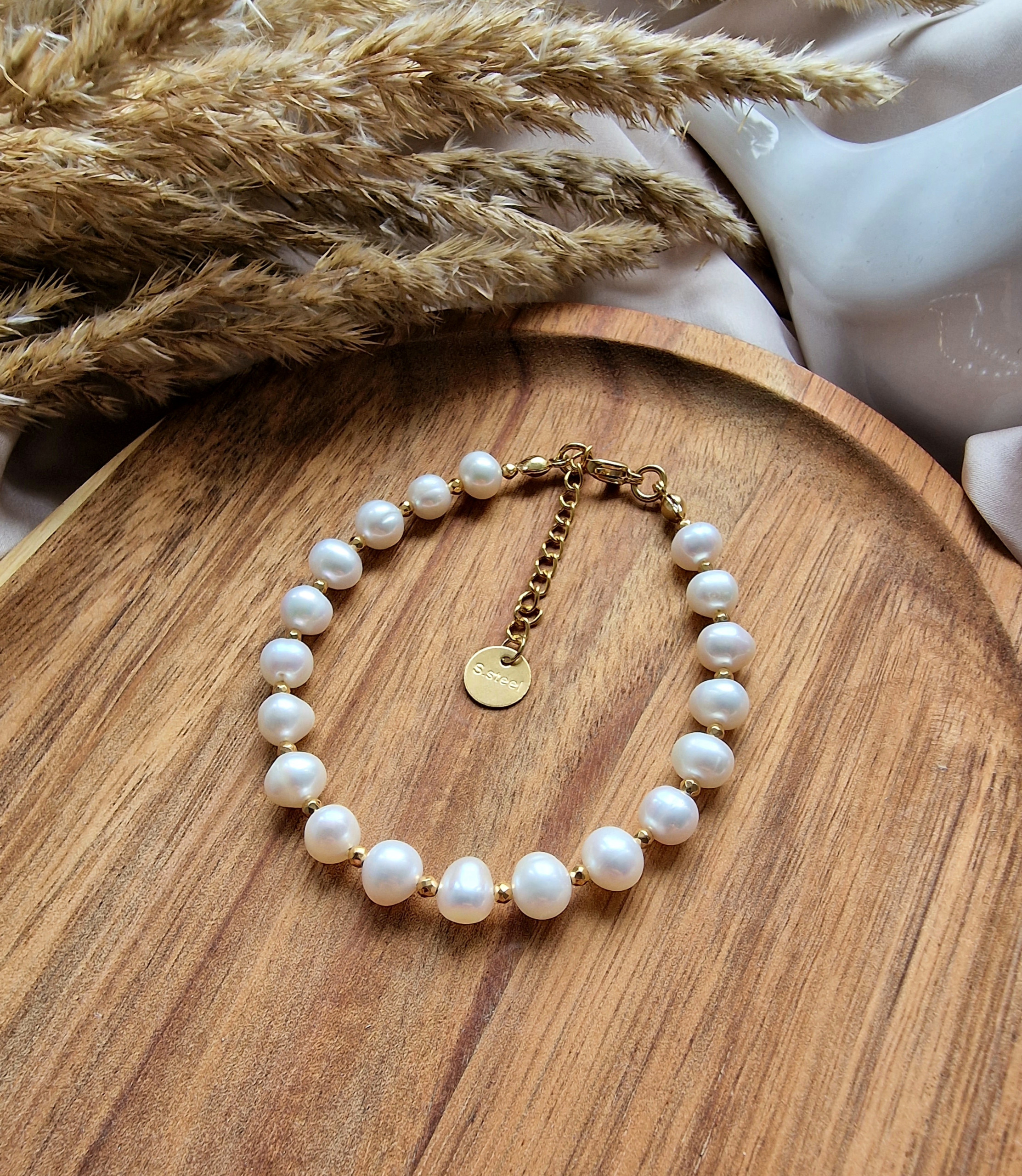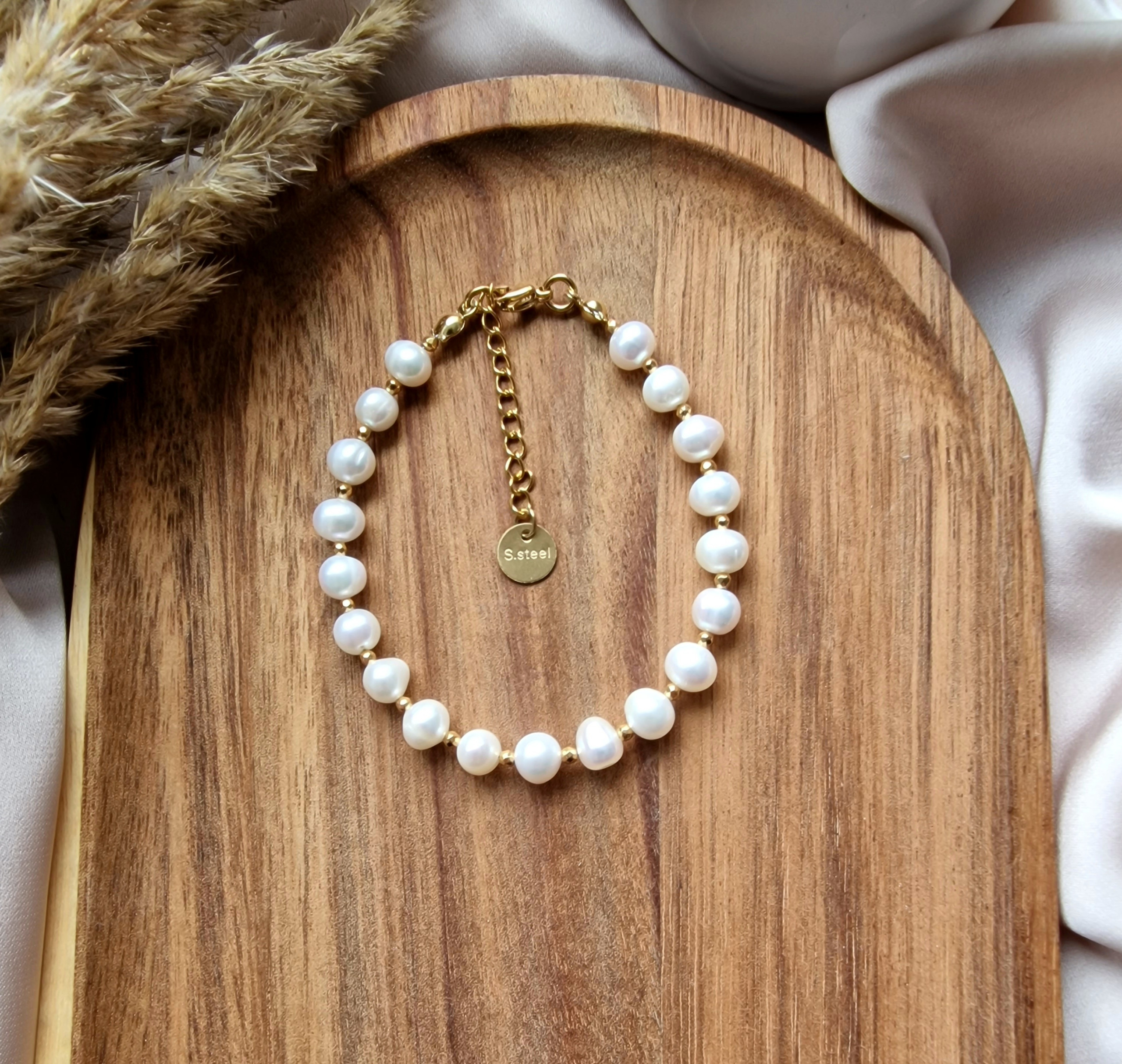 Kamienie użyte do wykonania bransoletki : PERŁA ok 5/6mm, HEMATYT ok 2mm.