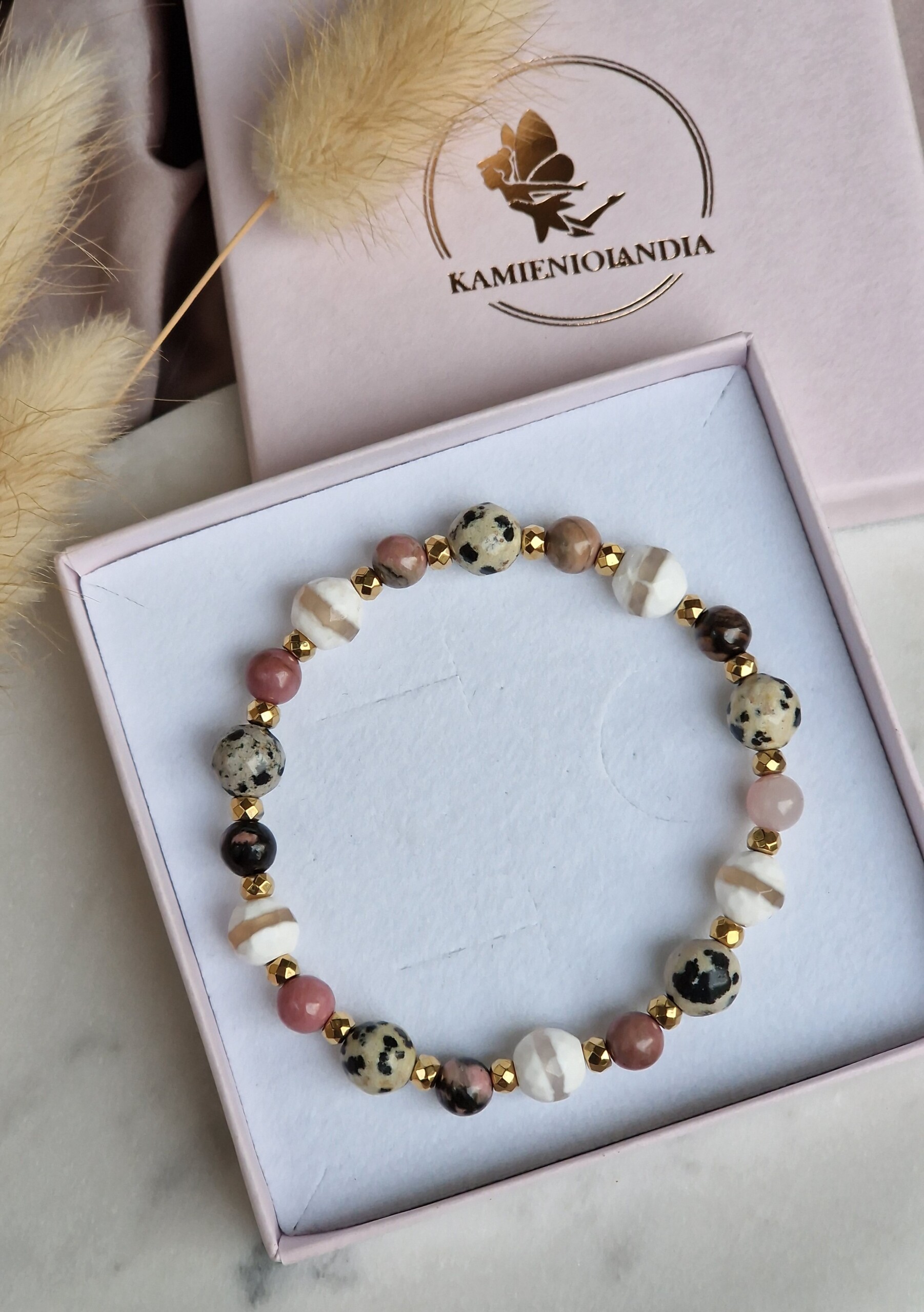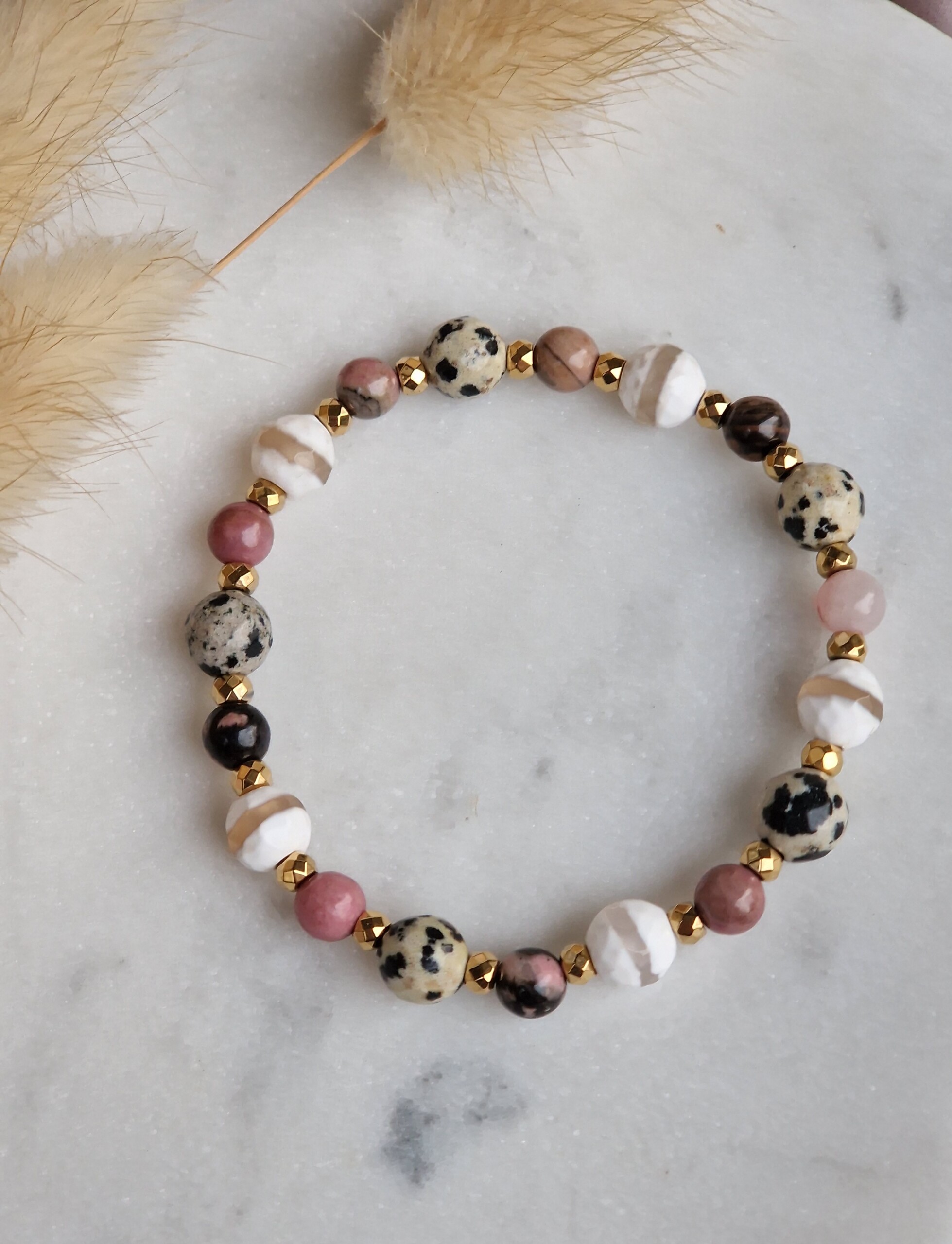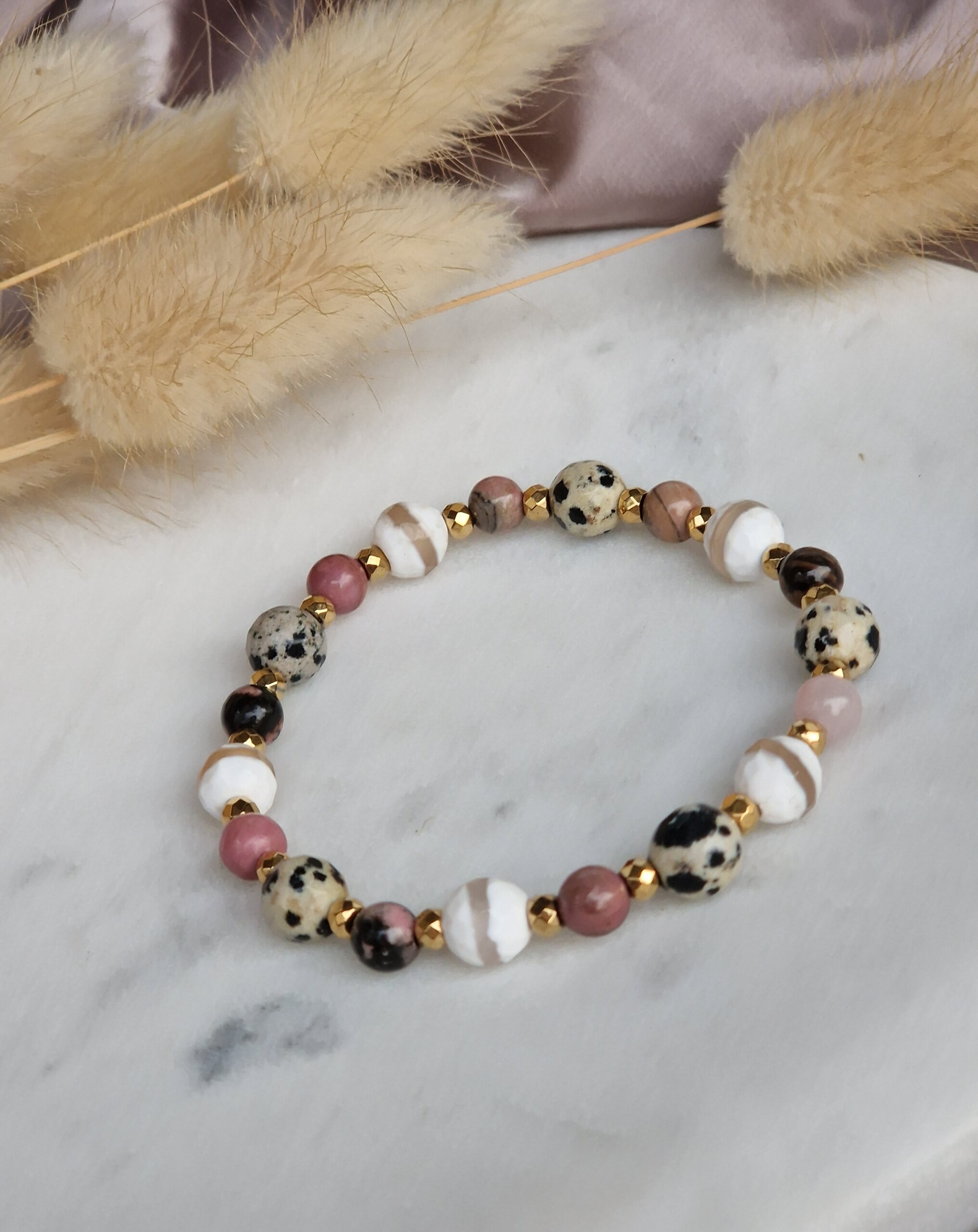 Bransoletka Rodonit, Agat, Jaspis dalmatyński, Hematyt