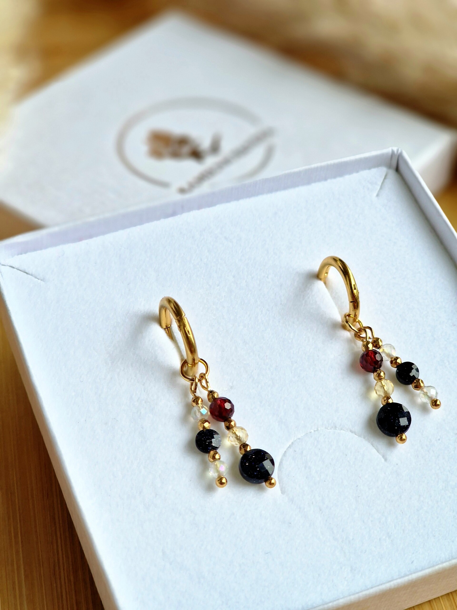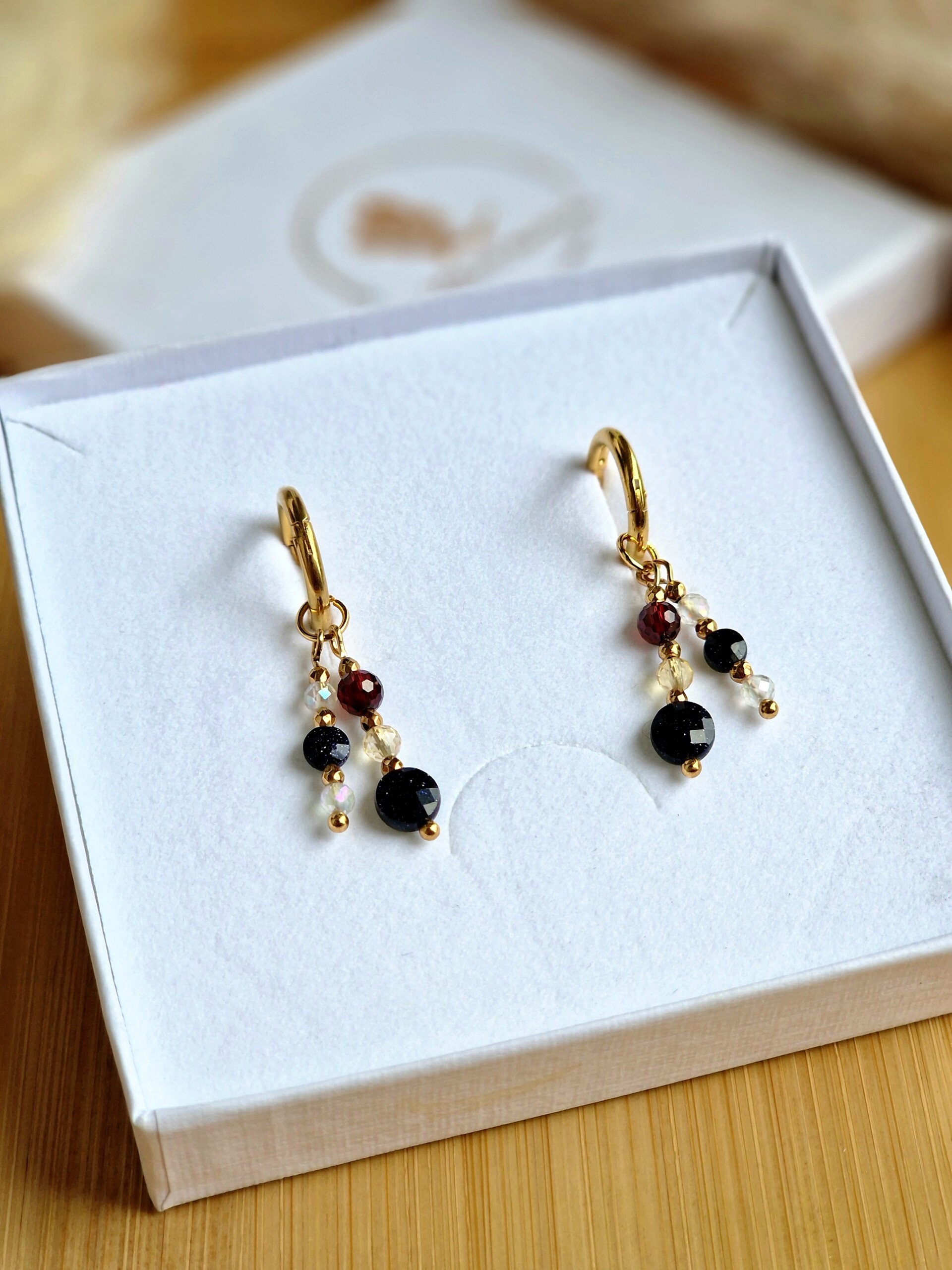 Kolczyki Cytryn, Kryształ górski, Granat, Noc Kairu, Hematyt