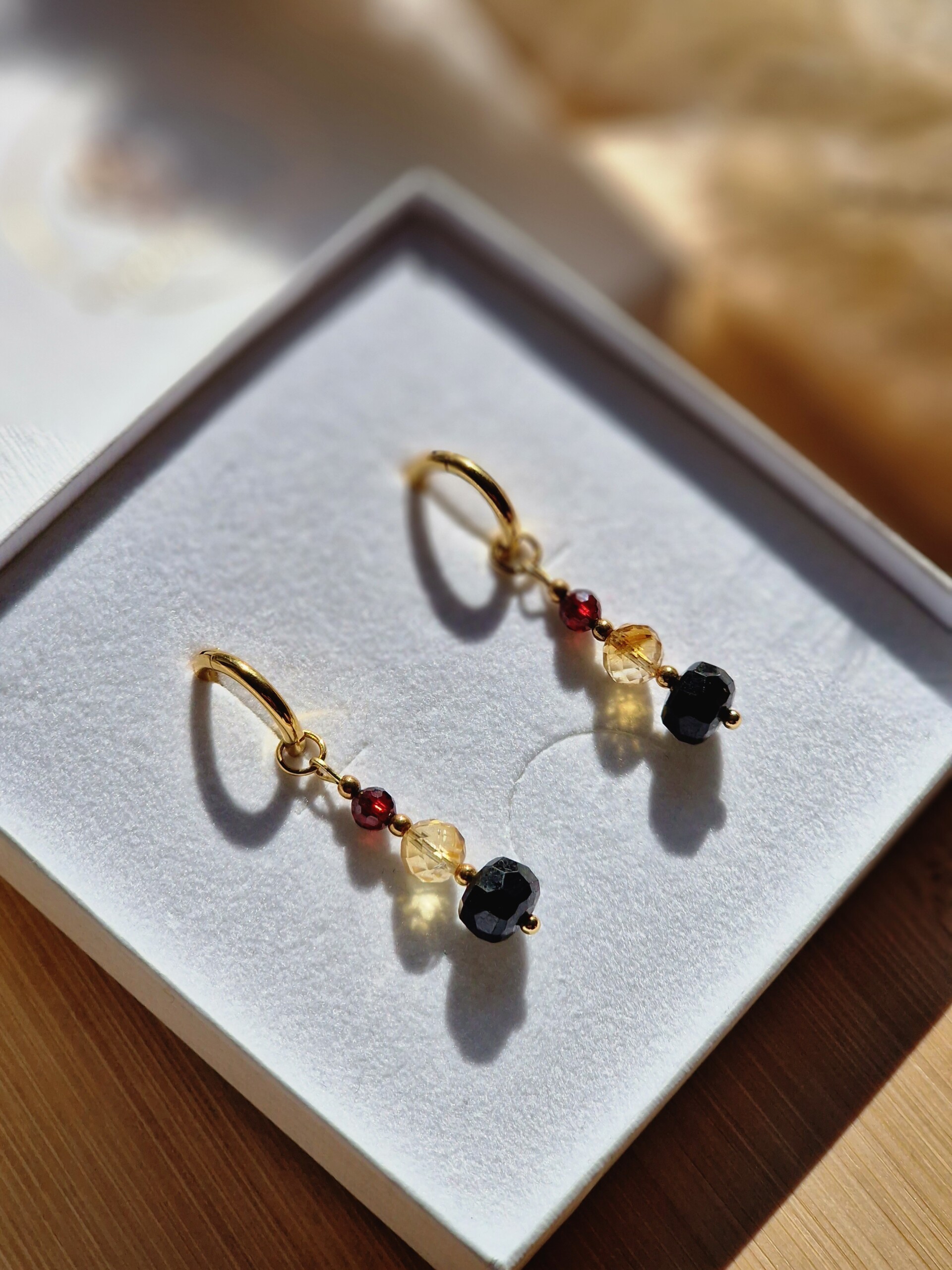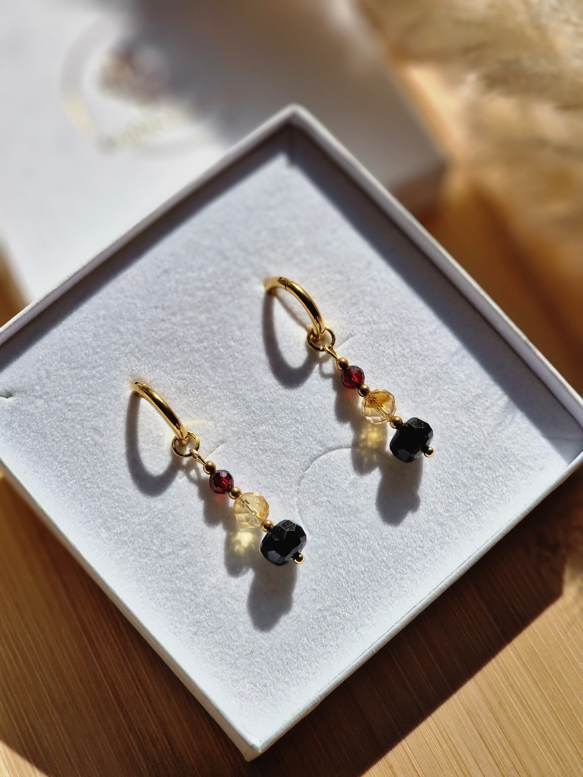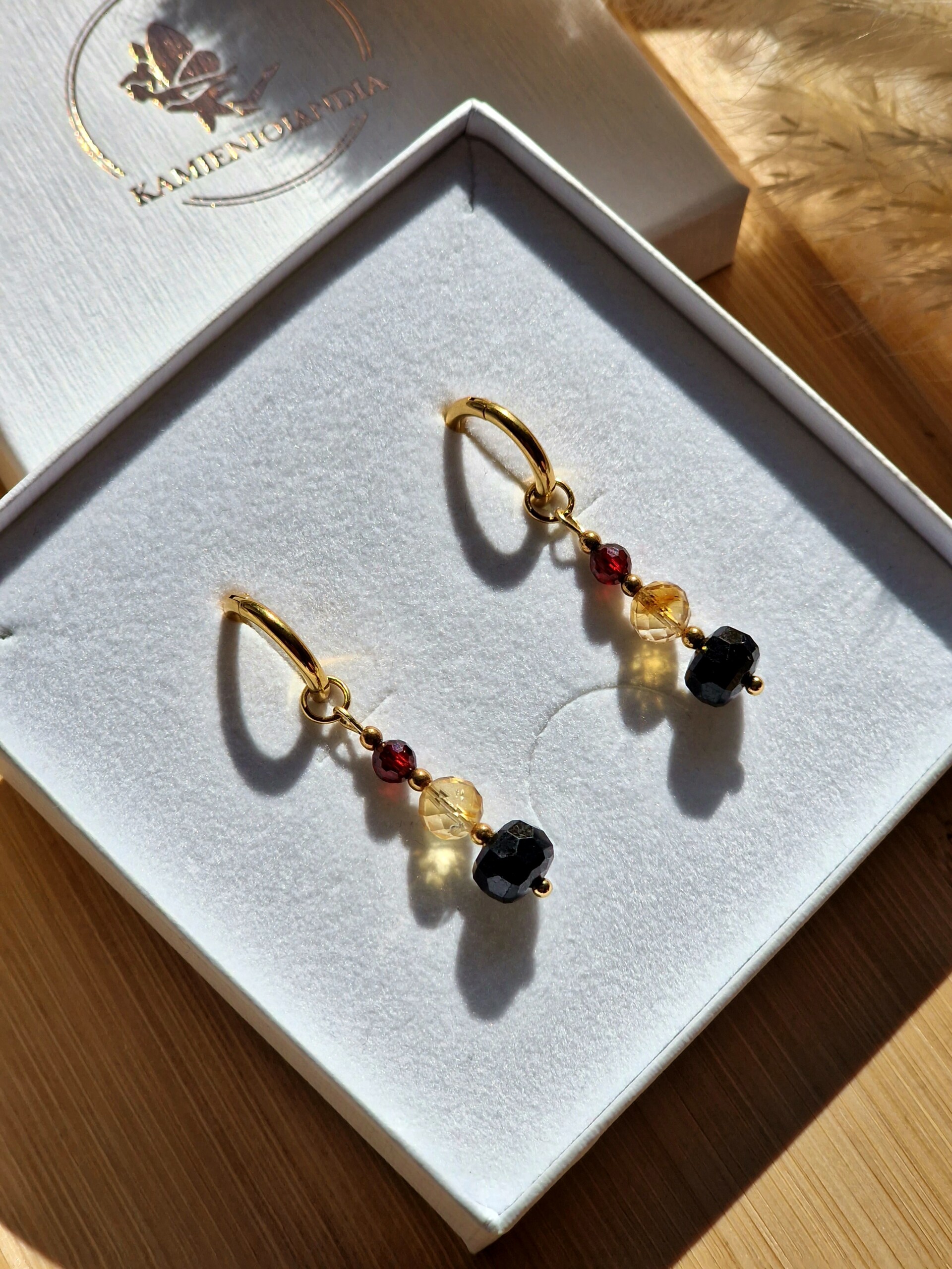 Kolczyki Cytryn Turmalin Granat Hematyt