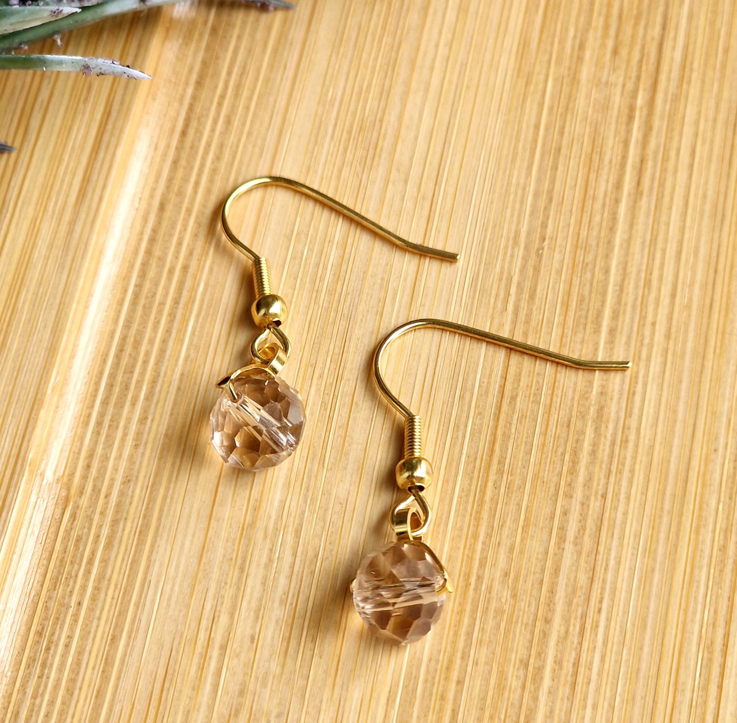 Kamienie użyte do wykonania kolczyków : KRYSZTAŁEK SZAMPAŃSKI ok 6 mm.
