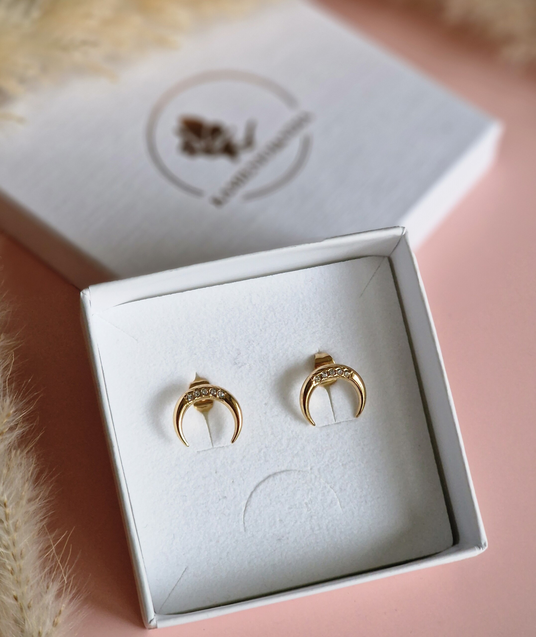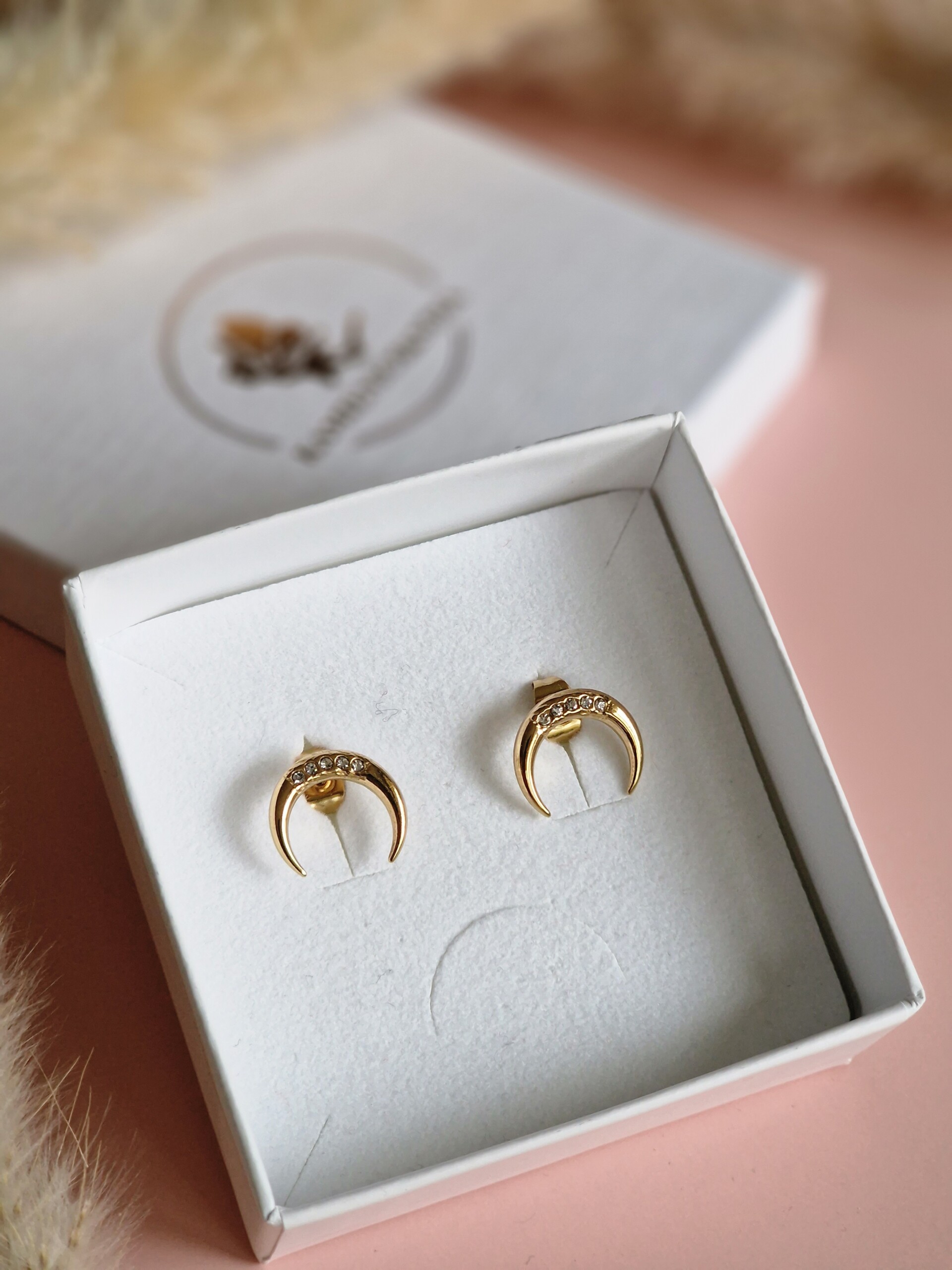Kolczyki róg z cyrkoniami, sztyft
