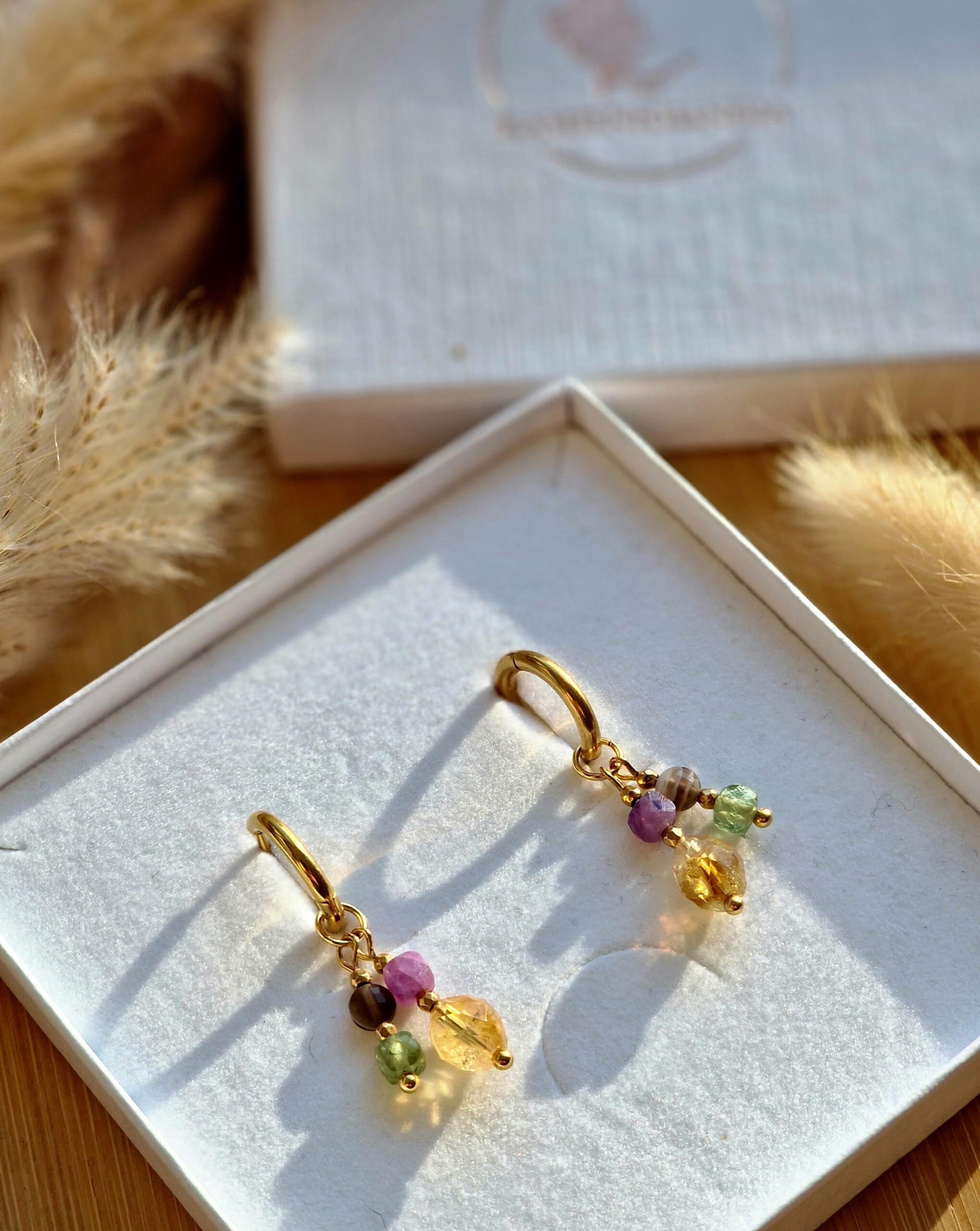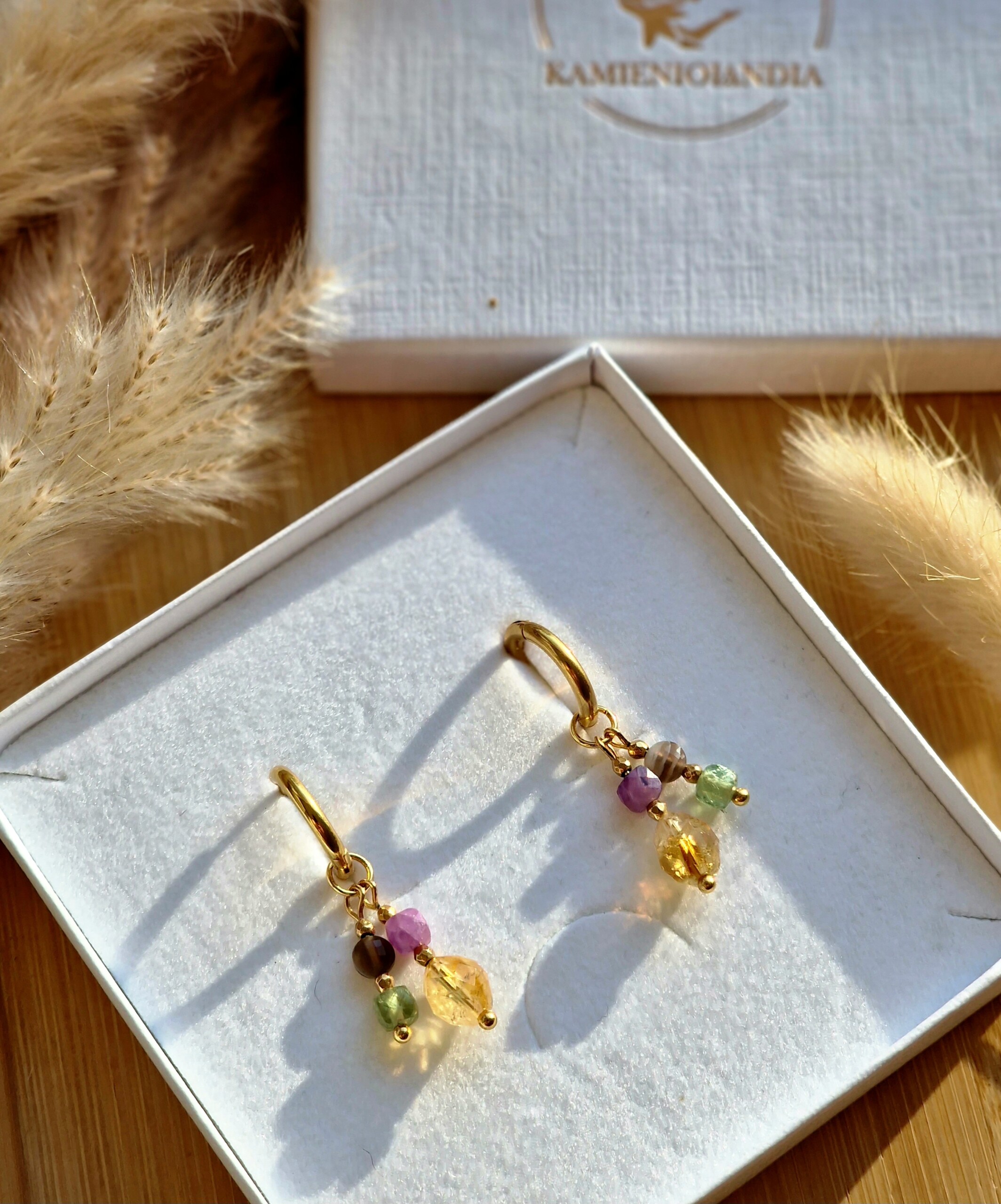 Kamienie użyte do wykonania kolczyków : RUBELIT ok 4/4 mm, AGAT BOTSWANA ok 4/2,5 mm , CYTRYN ok 8/7 mm, APATYT ZIELONY ok 4/4 mm, HEMATYT ok 2mm.