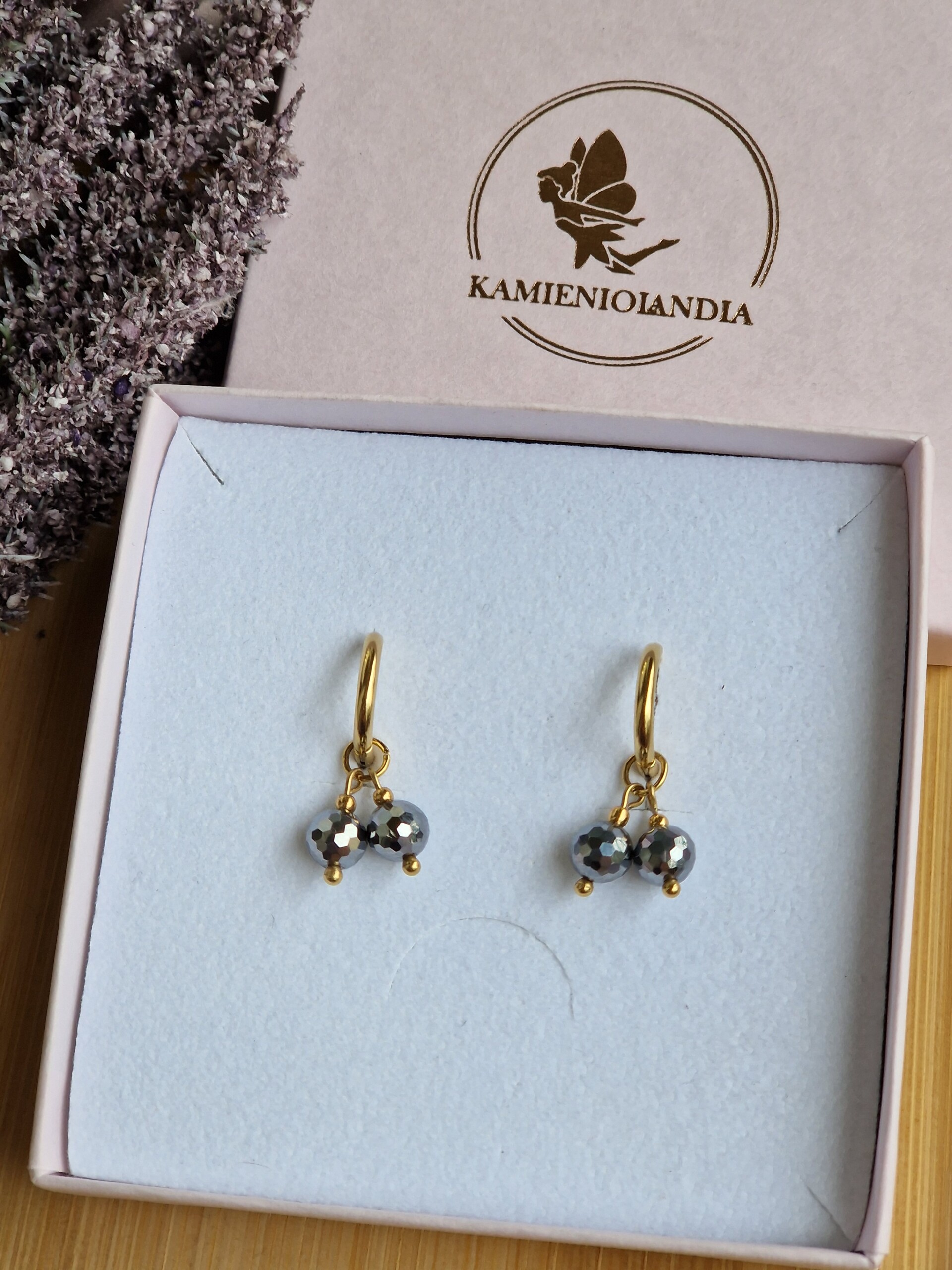 Kamienie użyte do wykonania kolczyków : TERAHERTZ ok 6mm, HEMATYT ok 2mm.