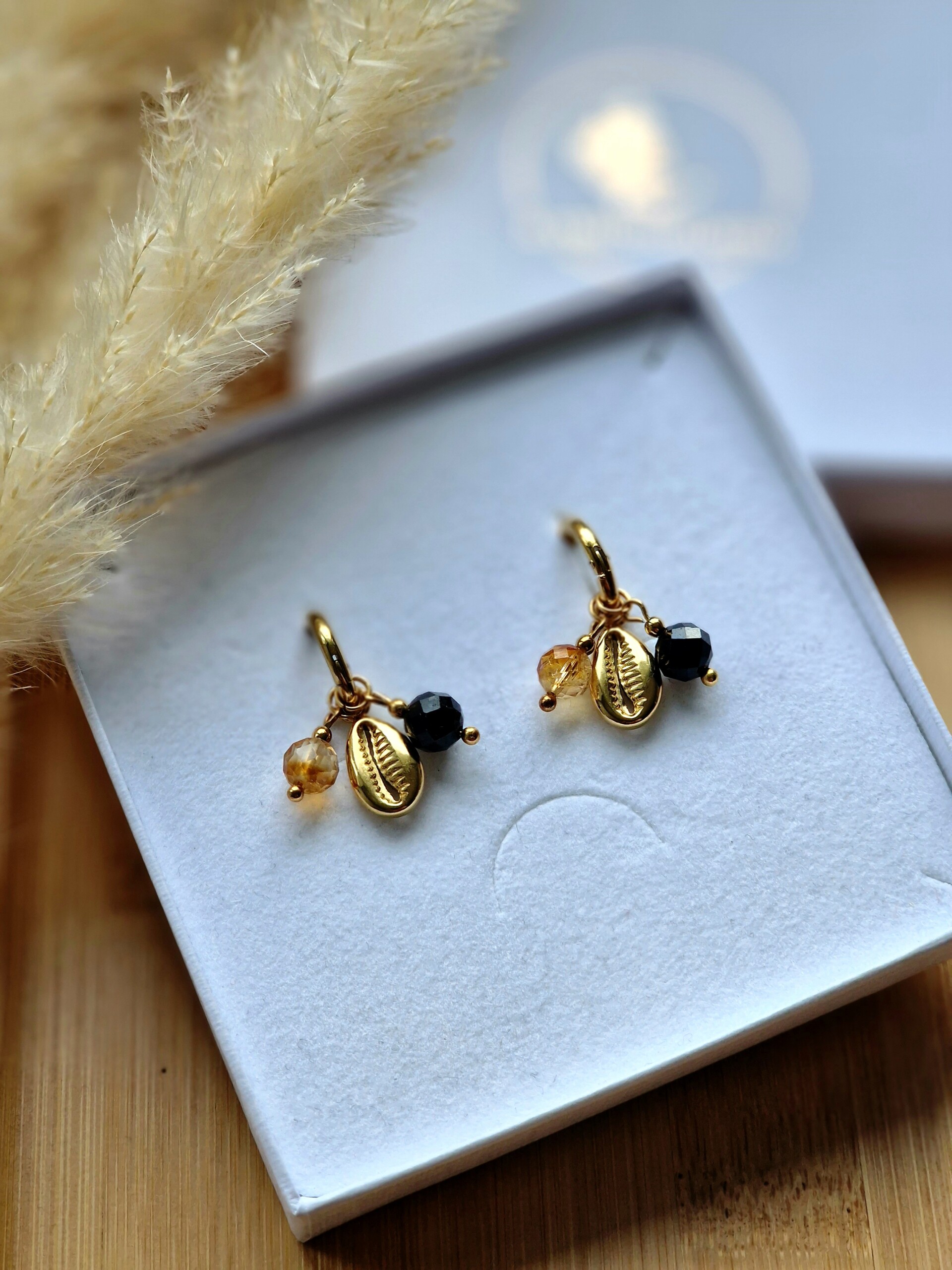 Kamienie użyte do wykonania kolczyków : TURMALIN ok 6 mm, CYTRYN ok 6 mm. HEMATYT ok 2mm.