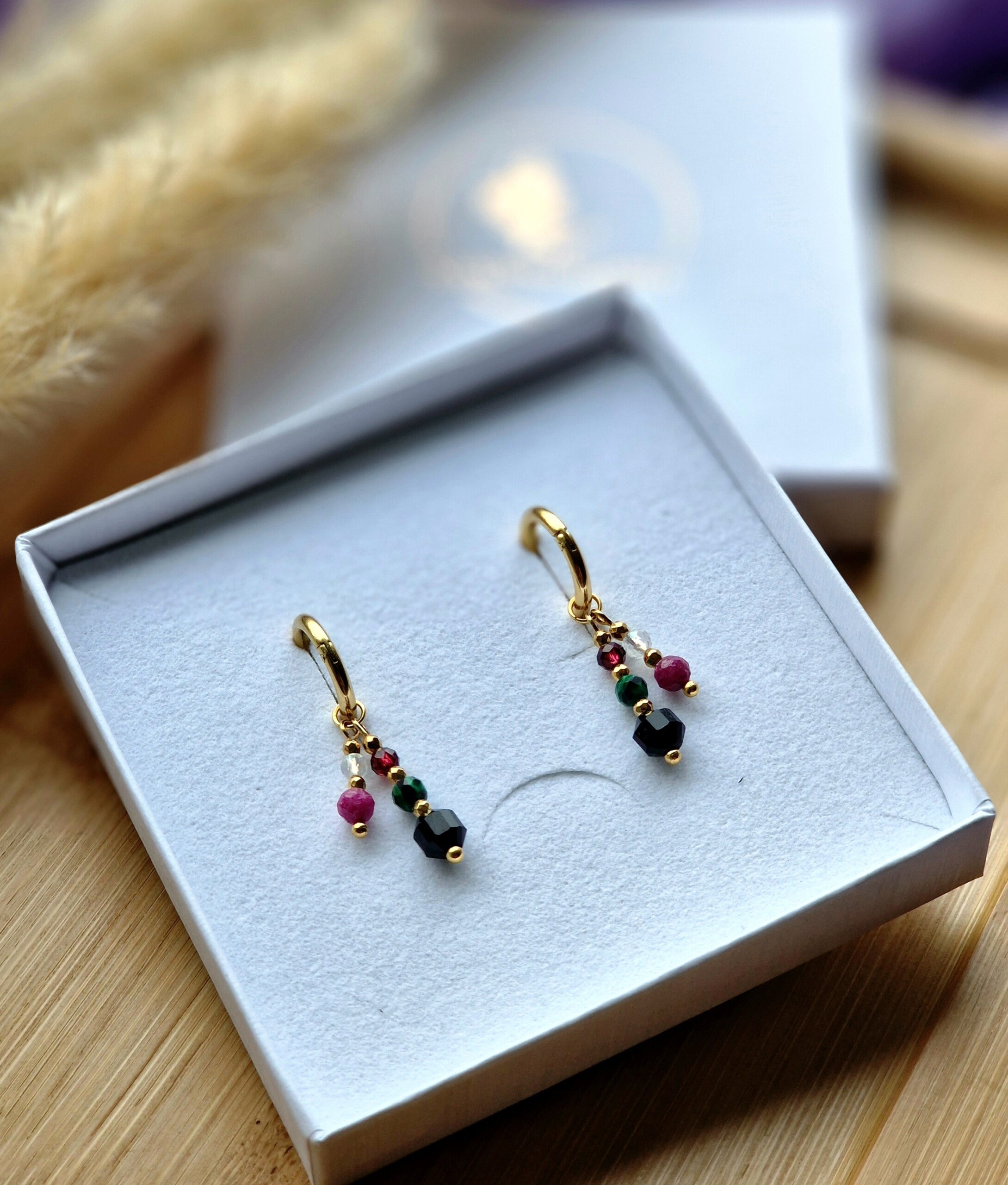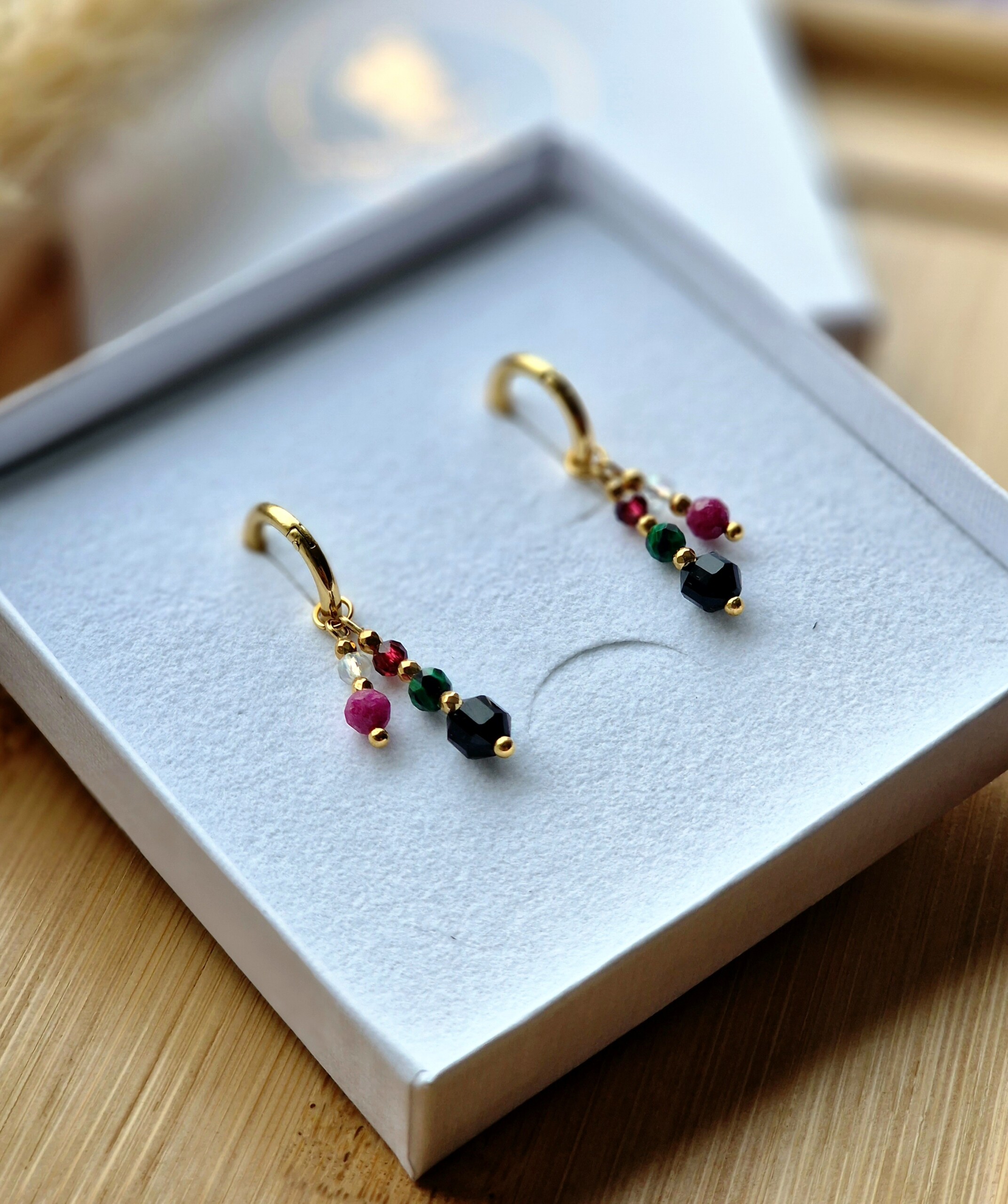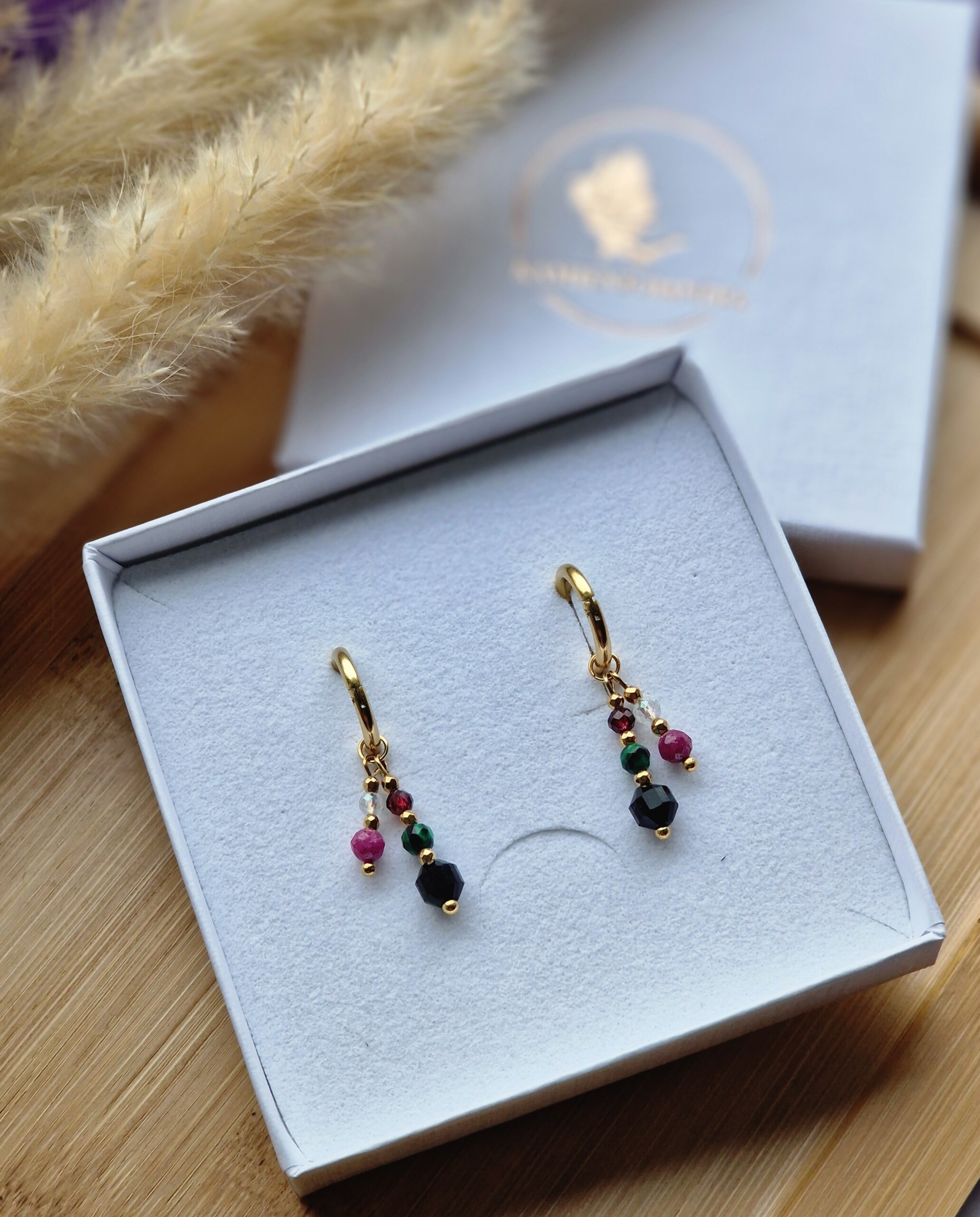 Kamienie użyte do wykonania kolczyków : RUBIN ok 4mm, MALACHIT ok 4mm, GRANAT ok 3mm, KRYSZTAŁ GÓRSKI ok 3mm, HEMATYT ok 2mm.