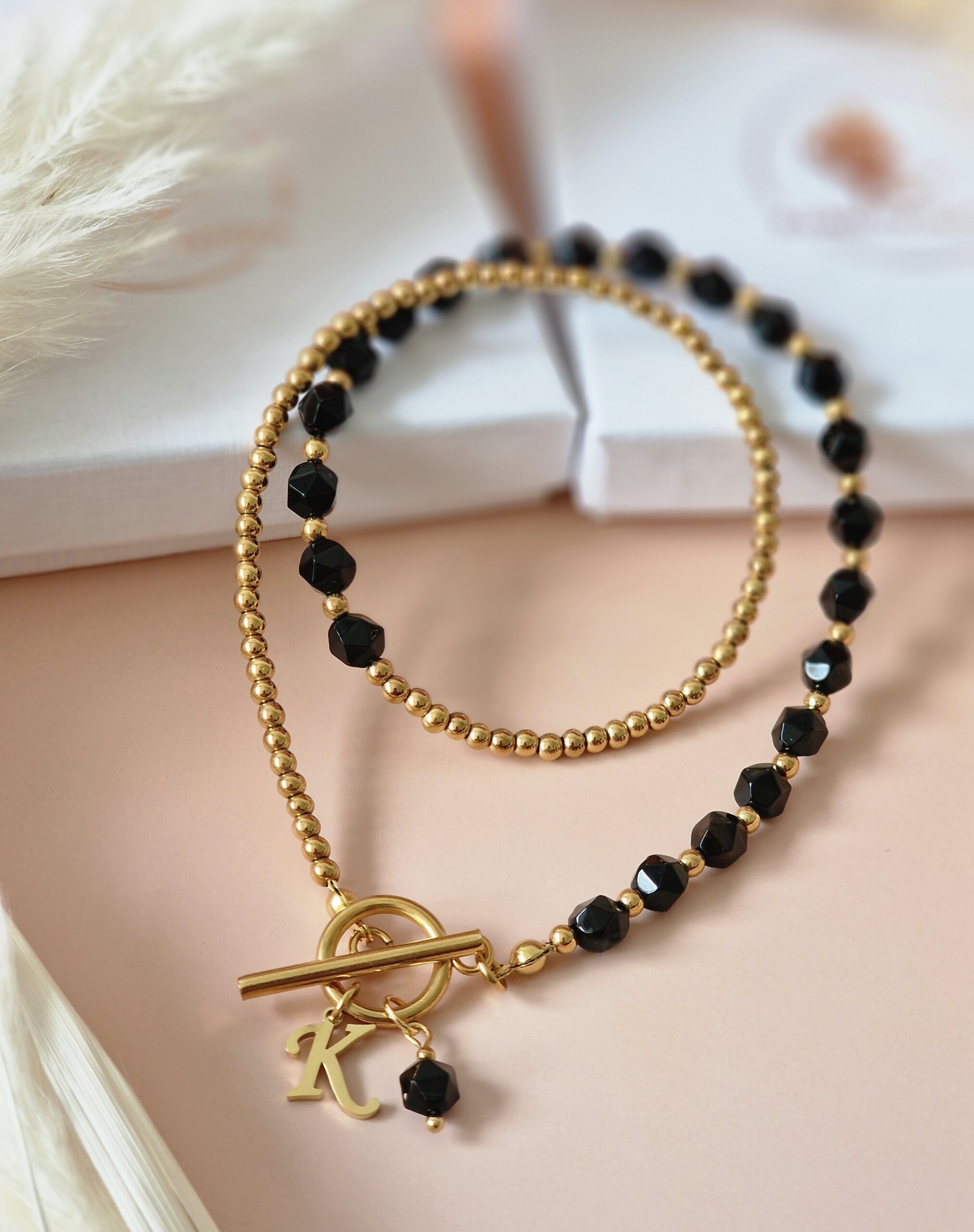 Naszyjnik Agat czarny, Hematyt