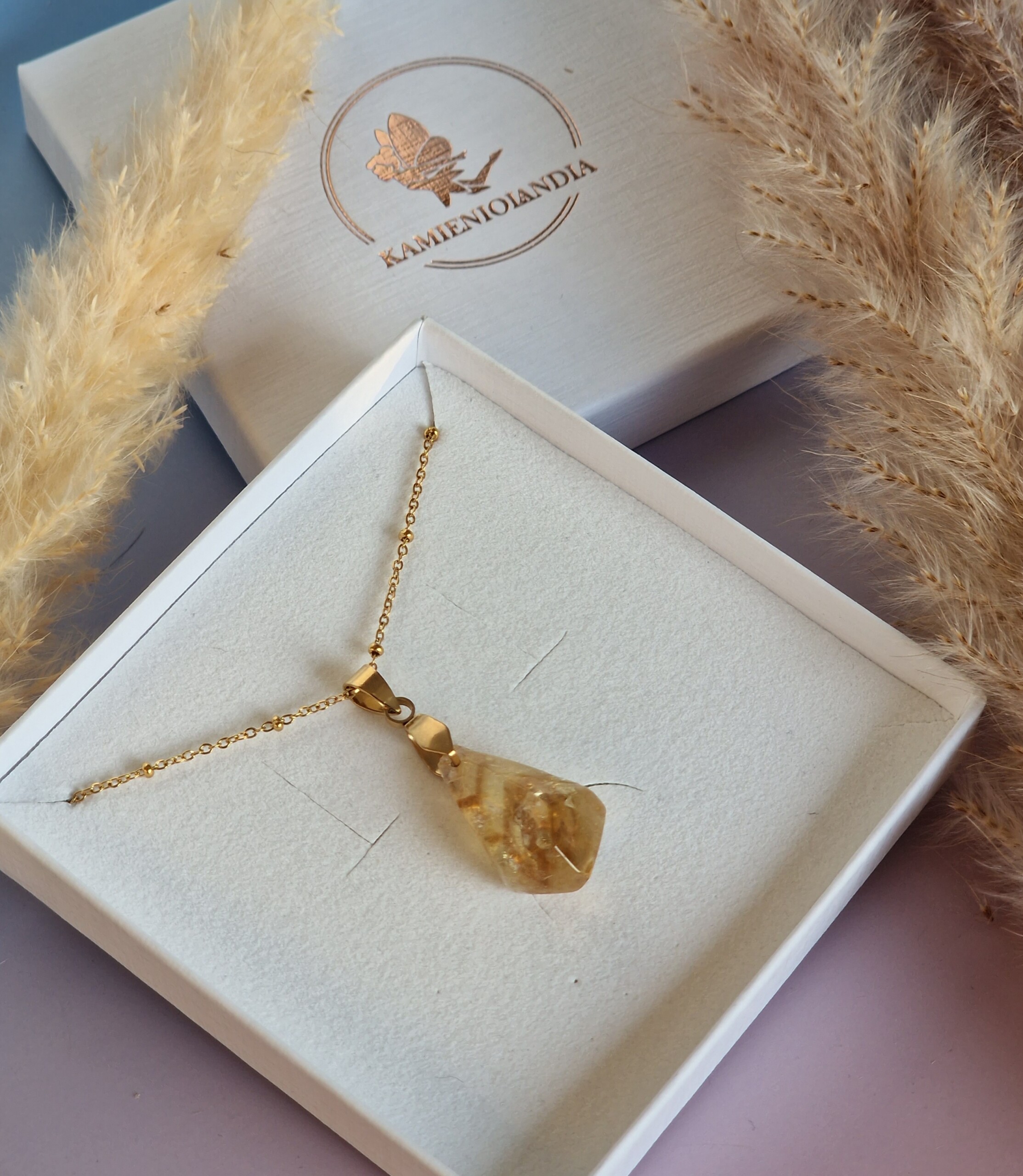 Kamień użyty do wykonania naszyjnika : CYTRYN ok 3,9 cm długości z krawatką oraz ok 1,4 cm w najszerszym miejscu.