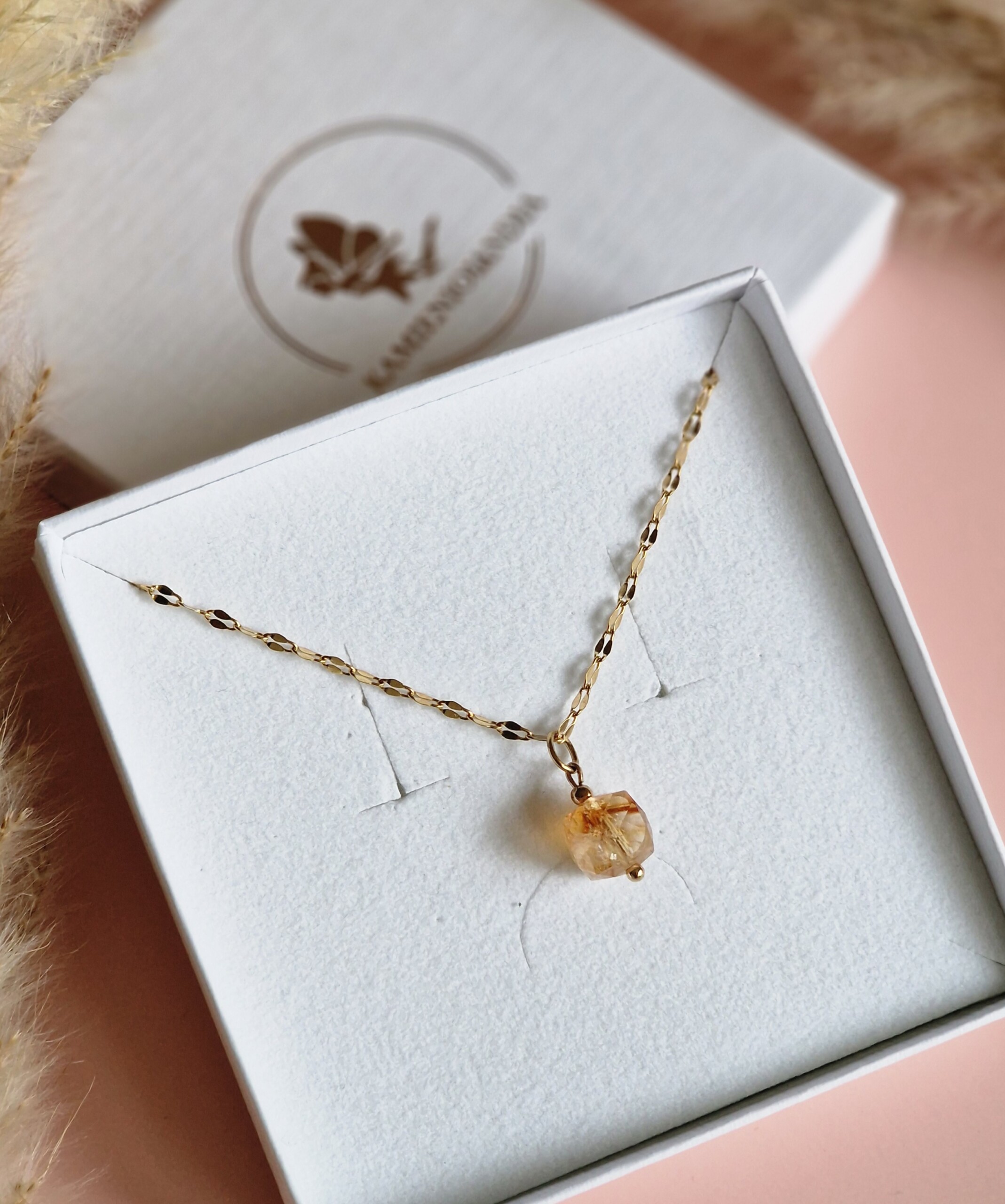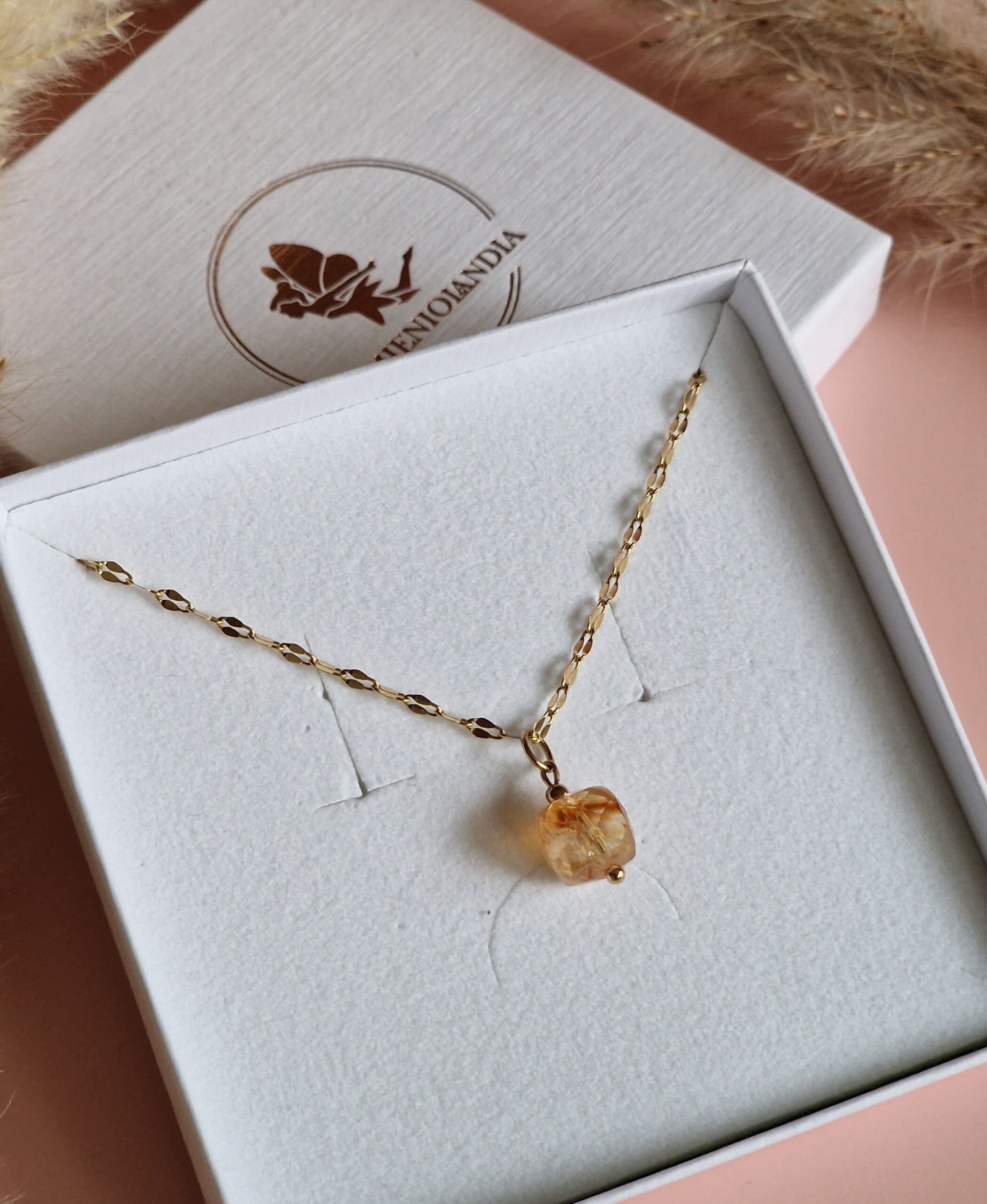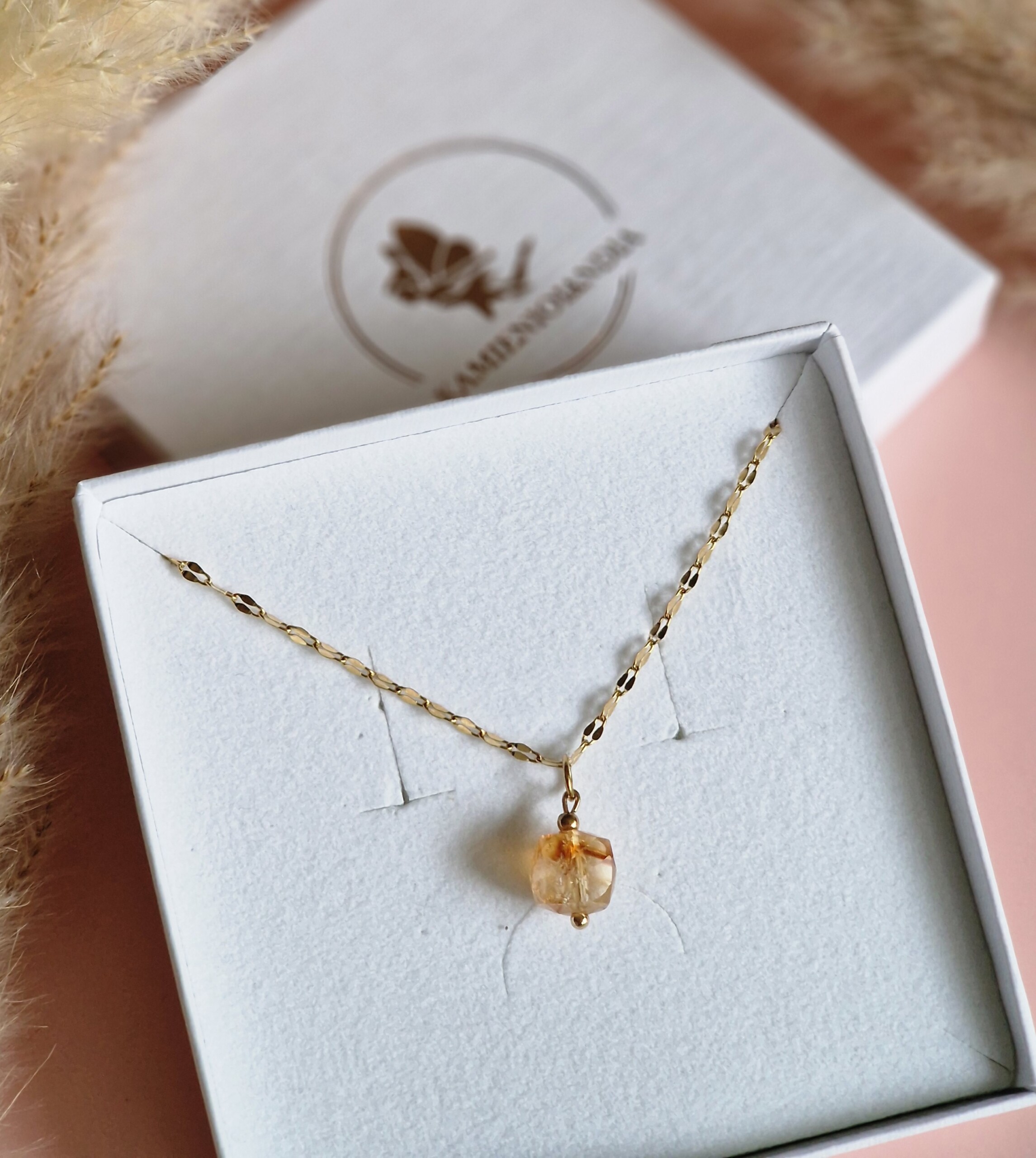 Kamień użyty do wykonania naszyjnika :  CYTRYN kostka ok 9/9 mm