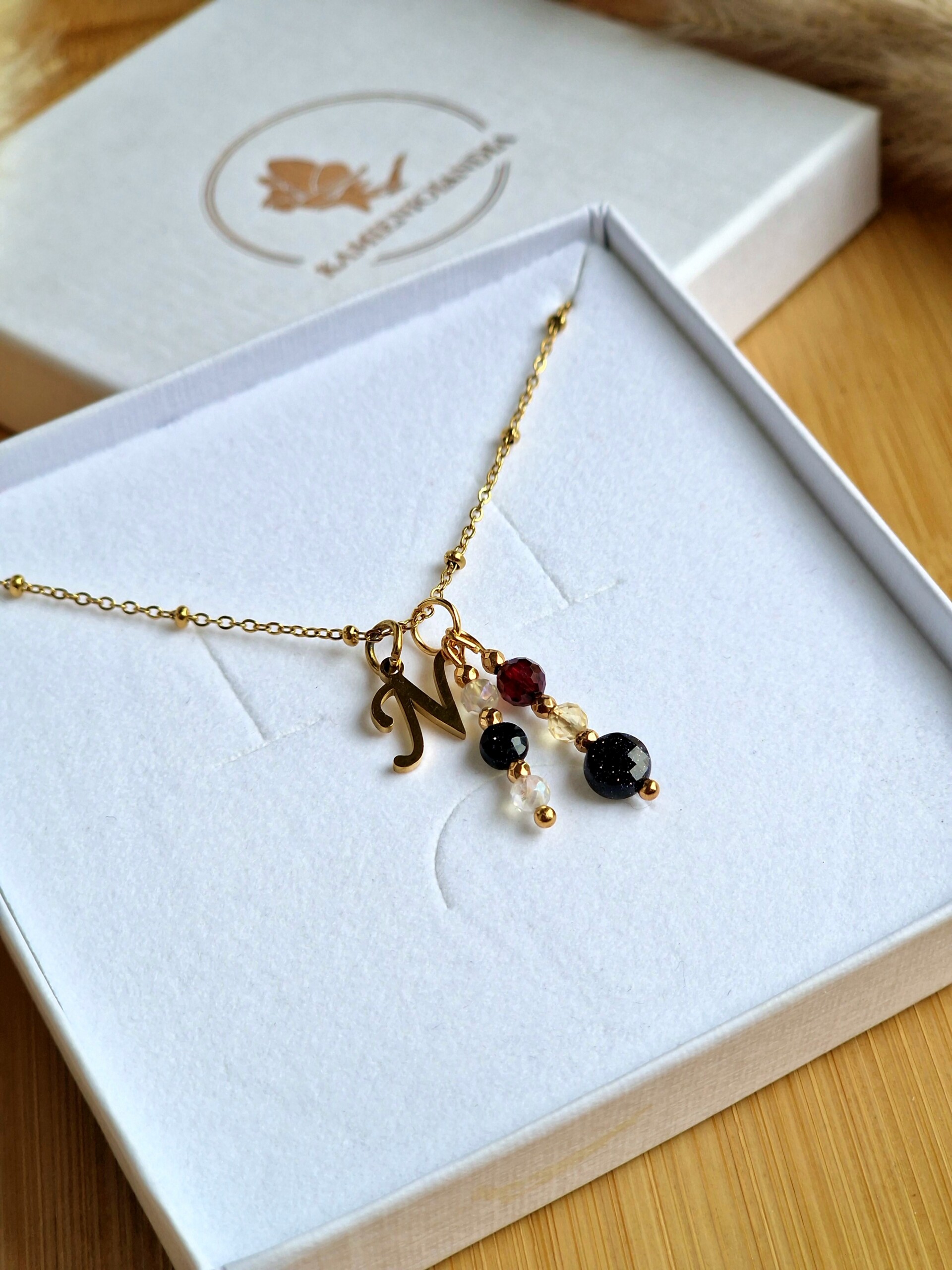 Kamienie użyte do wykonania naszyjnika : KRYSZTAŁ GÓRSKI ok 4mm, GRANAT ok 4mm, CYTRYN ok 3mm, NOC KAIRU ok 4,6 mm , NOC KAIRU ok 4/2,5 mm, HEMATYT ok 2mm.