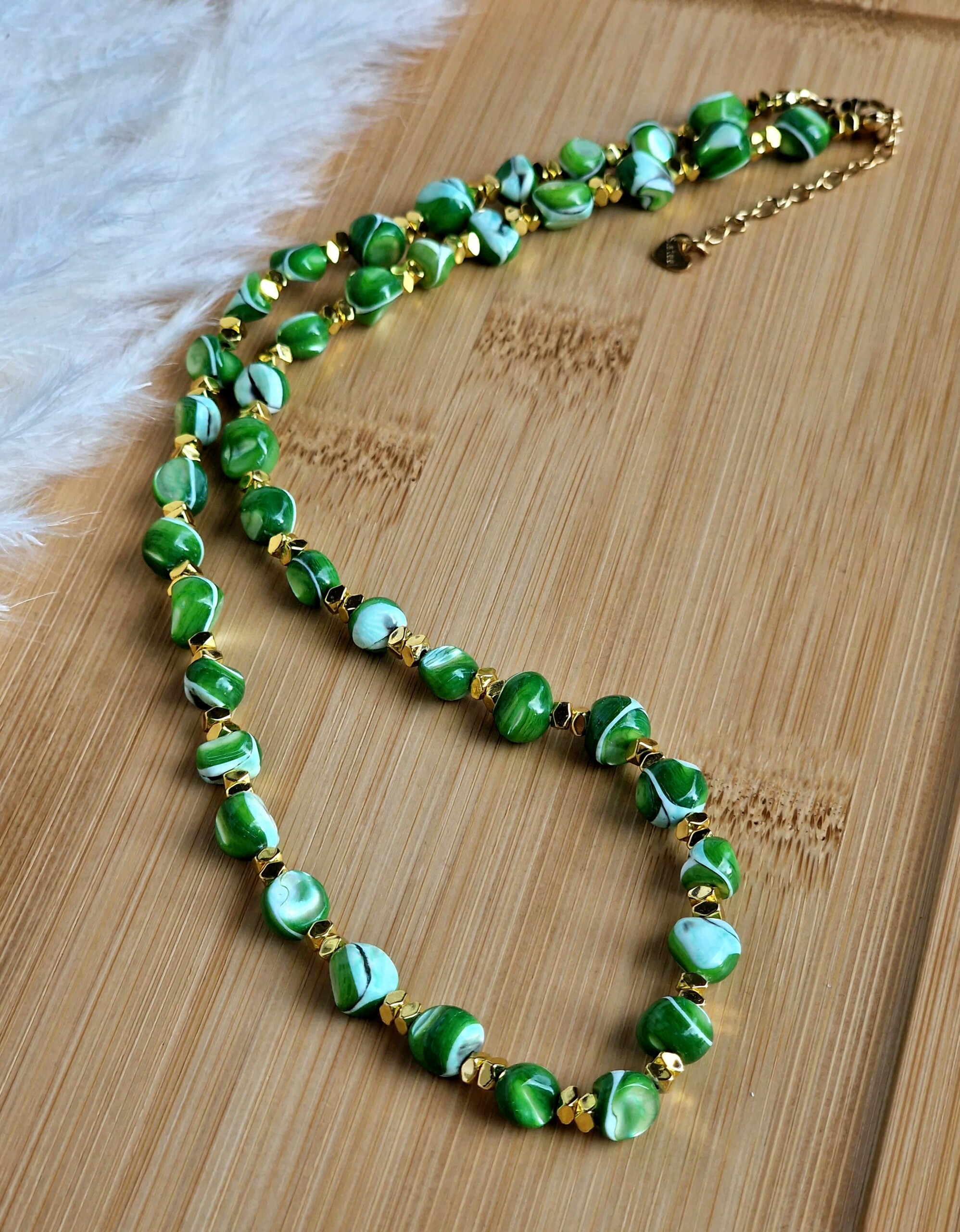 Kamienie użyte do wykonania naszyjnika :  MASA PERŁOWA  ok 6/9 mm, HEMATYT ok 3/4mm.