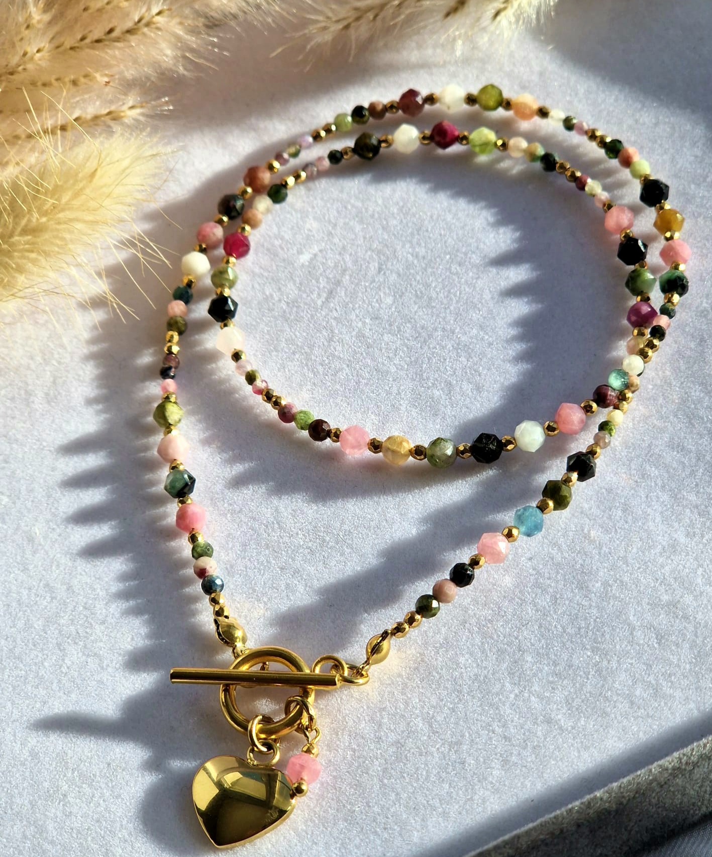 Kamienie użyte do wykonania naszyjnika : Turmalin kolorowy ok 2mm, ok 3mm, ok 4 mm, HEMATYT ok 2mm