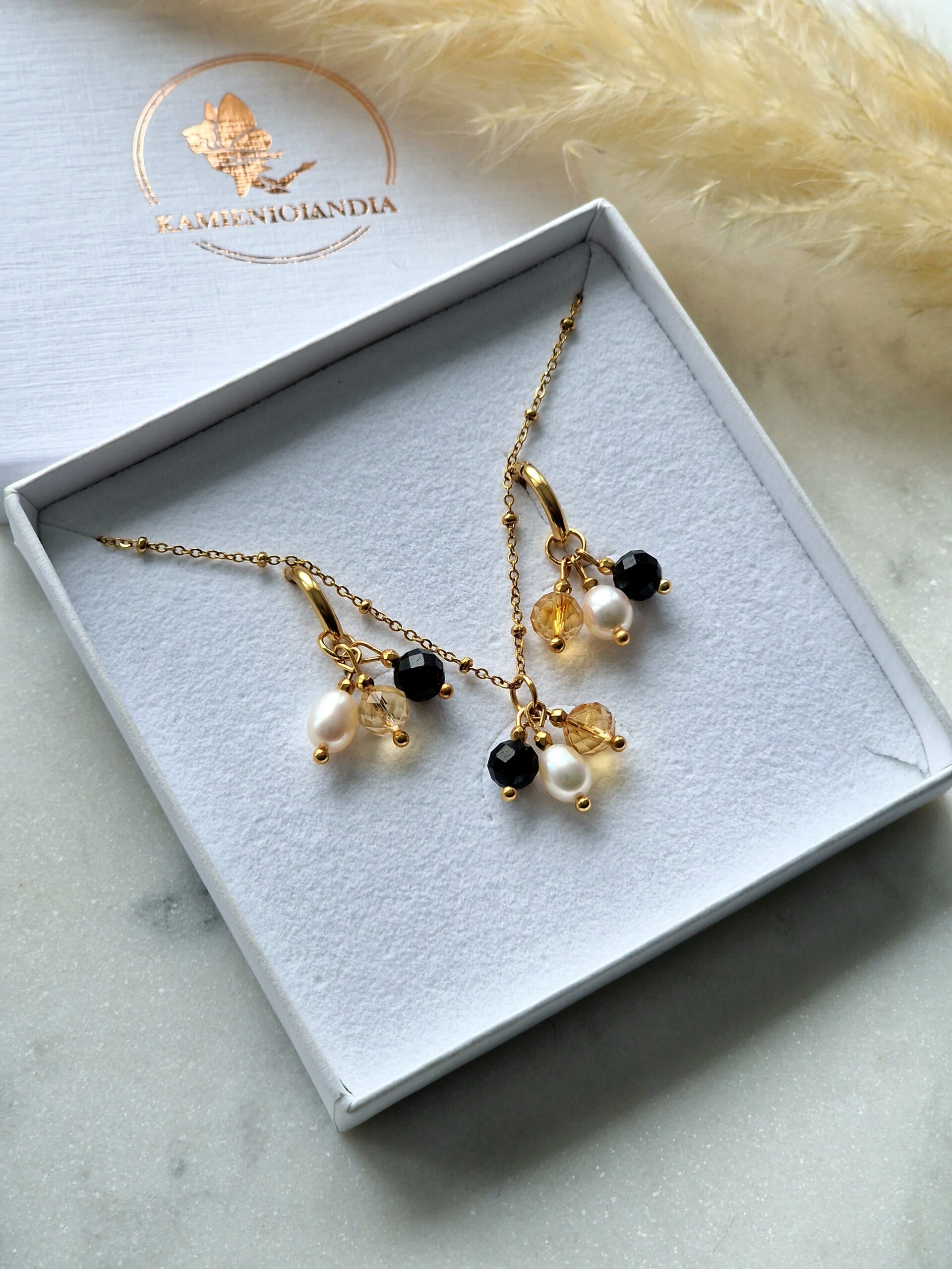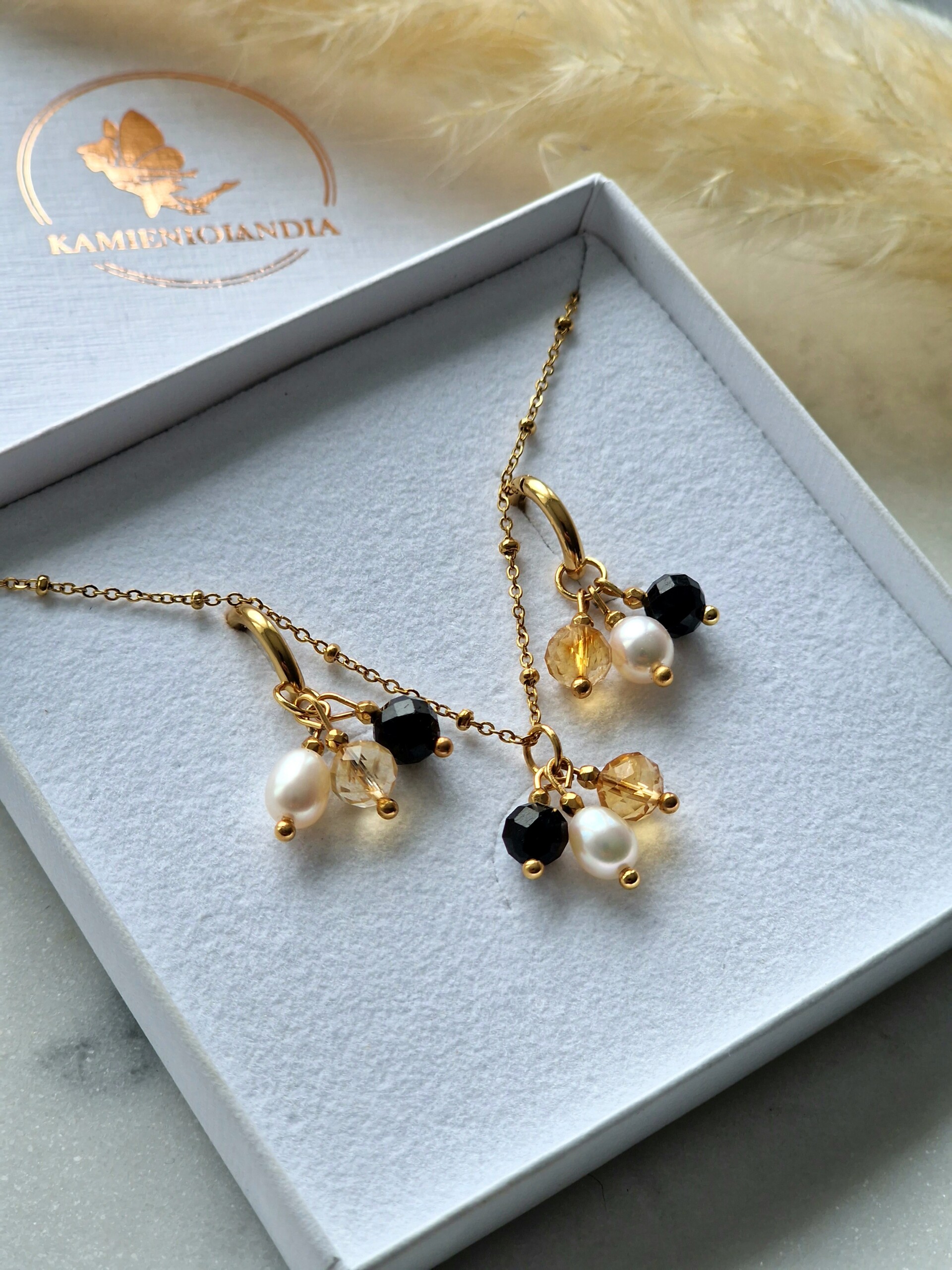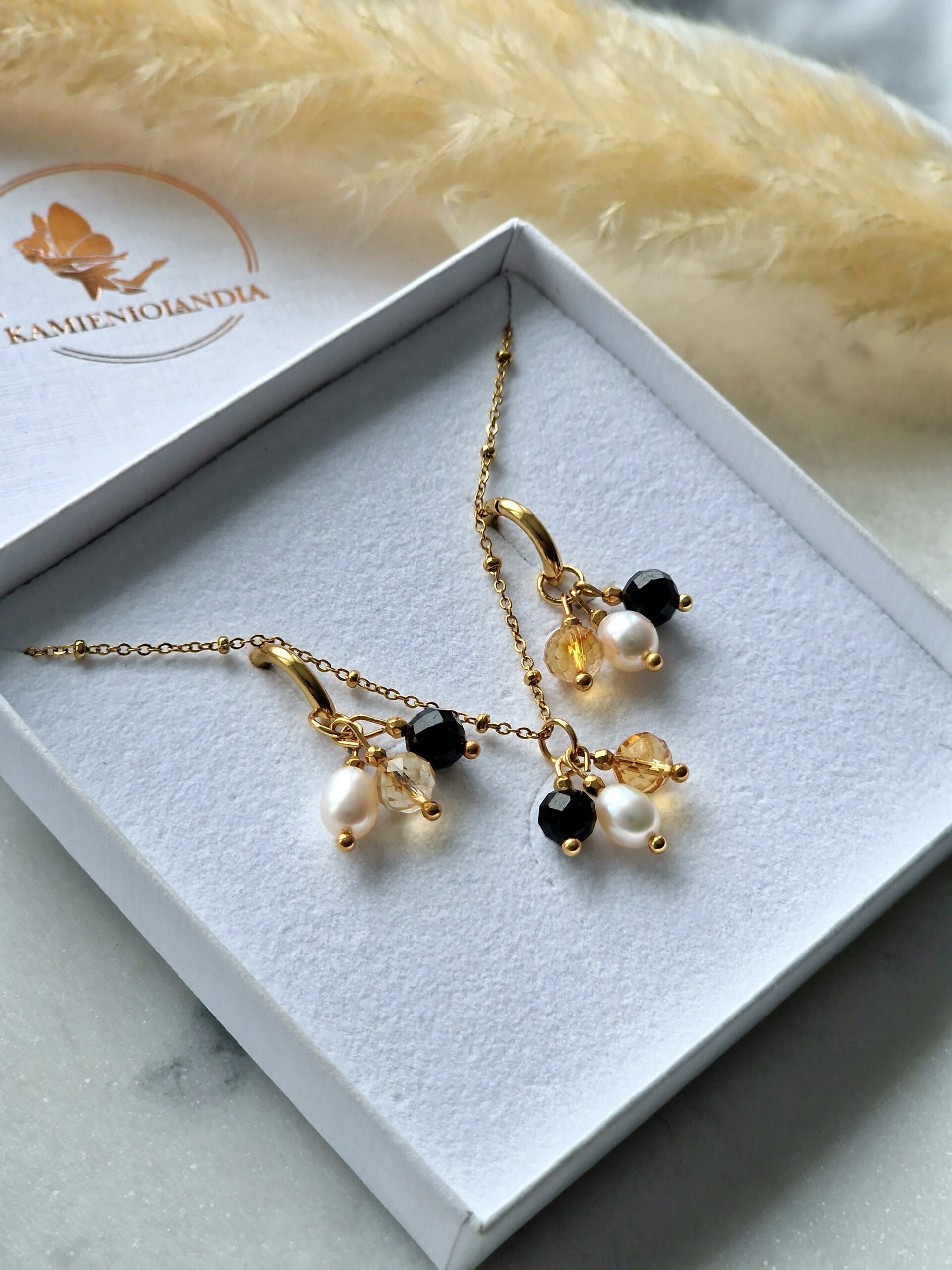 Zestaw Turmalin, Perła naturalna, Cytryn, Hematyt