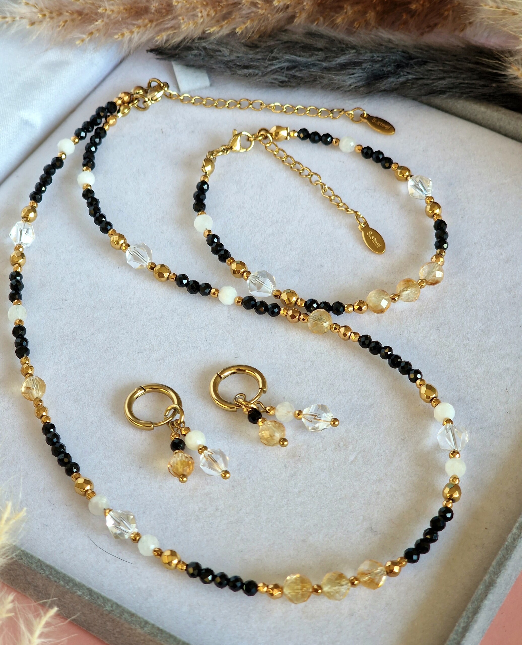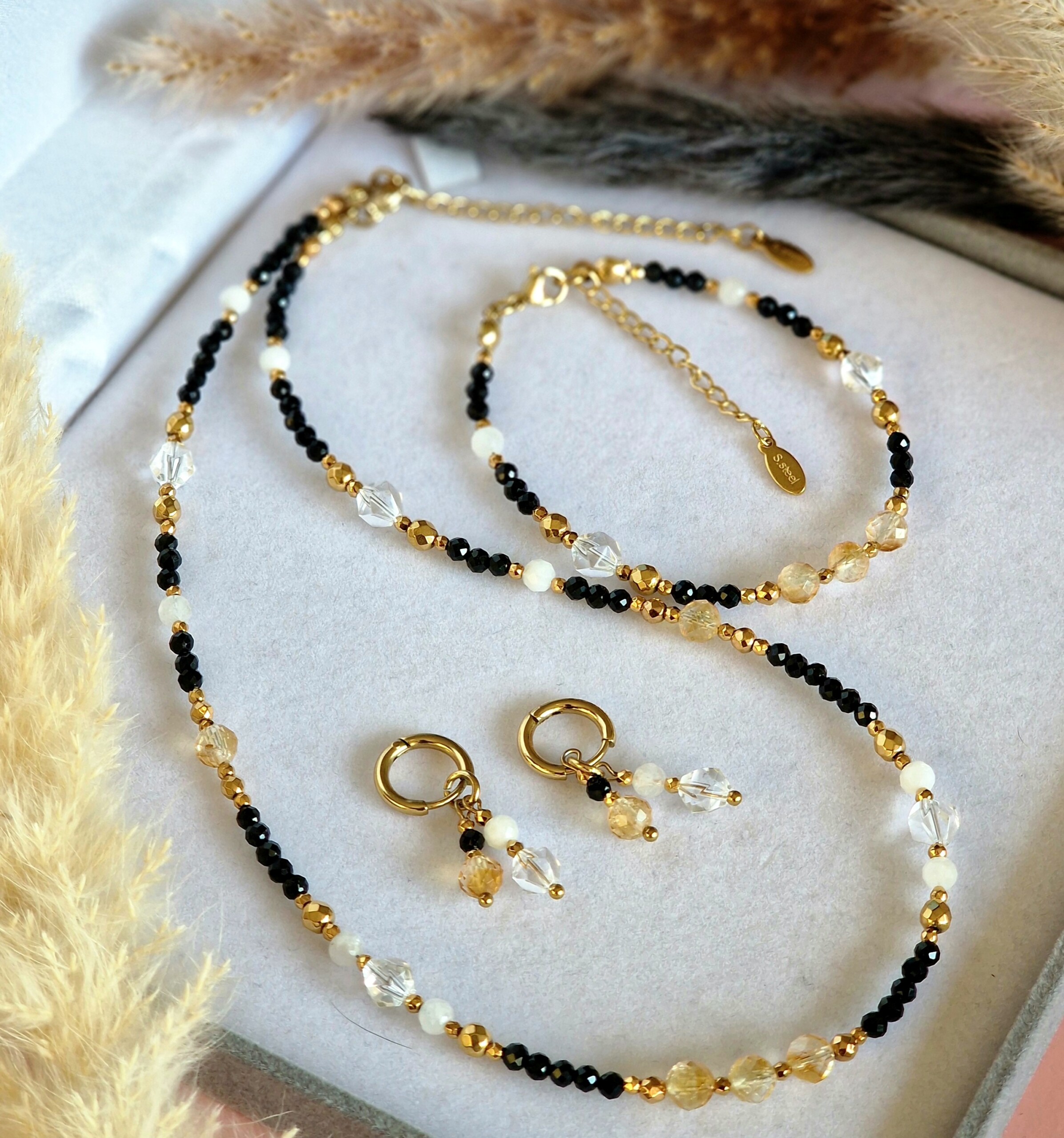Zestaw Cytryn, Turmalin, Kryształ górski, Kamień księżycowy, Hematyt